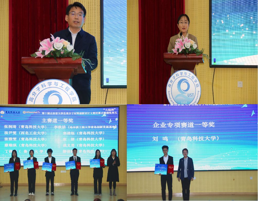 12月12日下午,由山东省科协、省教育厅、团省委、省发改委、省工信部、省人社厅主办,青岛市科协、青岛市科技大学承办,大陆集团康迪泰克子集团协办的“大陆杯”第十届山东省大学生高分子材料创新设计大赛闭幕式暨颁奖典礼在青科大四方校区尚瞬学术报告厅举行,党委常委、副校长丁林出席典礼并讲话。