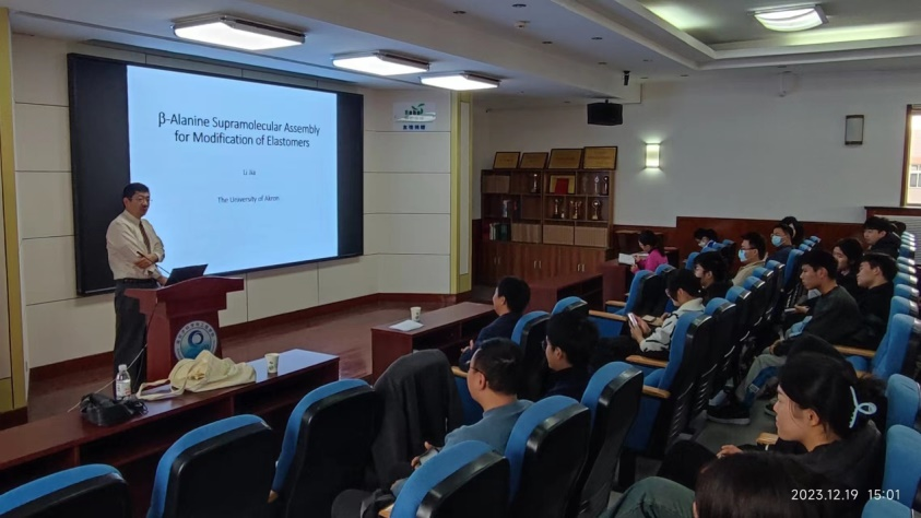 下午,贾力教授在高分子楼401会议室做客研究生讲坛,做了题为“β-丙氨酸超分子组装用于改性弹性体”的精彩学术报告。该报告探讨了β-丙氨酸在弹性体领域的新应用,特别聚焦于其超分子组装的独特能力以及在弹性体加工和性能改进方面的潜在作用。
