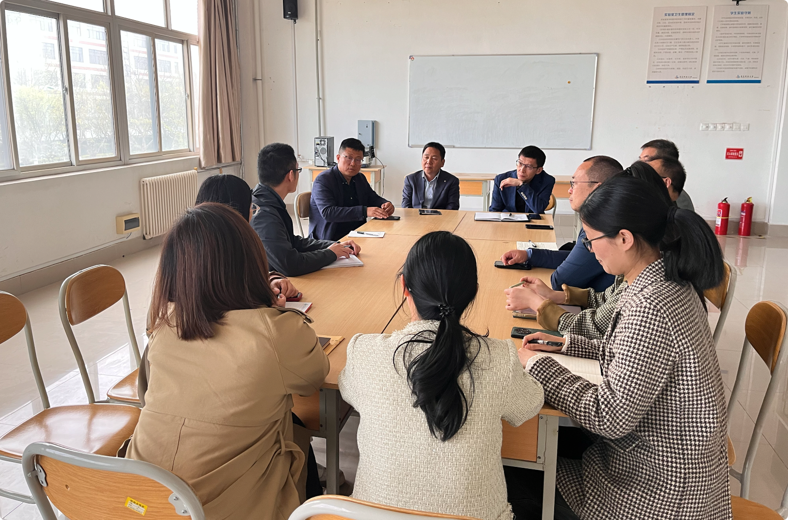 近期,高分子学院院长张建明、党委书记宣宗伟一行6人到高密校区高材系走访调研。期间实地察看了高材系高分子专业实验室,与高材系教职工进行了座谈,充分了解了高材系目前的教学、科研现状。并且围绕雍占福、孙翀、王存国三位专家教授的科研项目落户高密校区、实验室规划建设、教师科研能力提升、产学研融合等方面与高材系教师和高密校区领导进行了沟通交流,为下一步更好地促进学院本部与高材系的协同发展达成了共识。