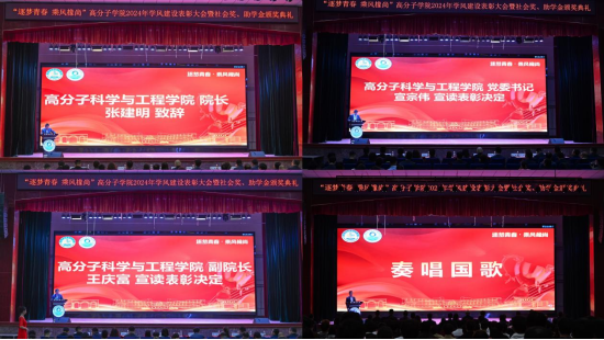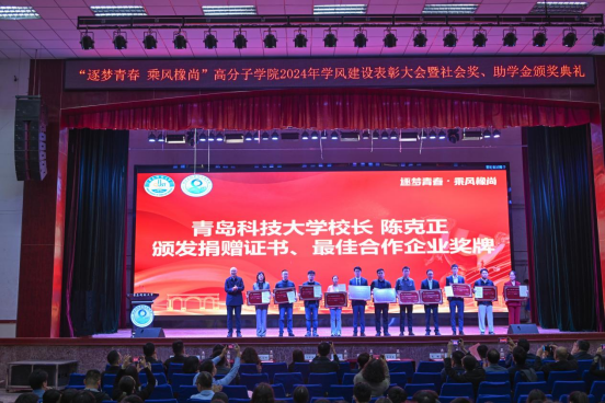 为深入贯彻落实党的二十大精神和学校第十一次党代会精神,不断提高人才培养质量,实现校企协同育人,着力造就拔尖创新人才。5月7日下午,高分子学院“逐梦青春 乘风橡尚”2024年学风建设表彰大会暨社会奖、助学金颁奖典礼在四方校区举行。校长陈克正出席典礼,为2023年度高分子学院“五星高材生”颁奖,并为2023年度设奖、助学金单位代表颁发捐赠证书、最佳合作企业奖牌。本年度社会奖、助学金首次涵盖高密校区高材系共16名学生。大会由高分子学院党委副书记兼副院长贾明明主持。