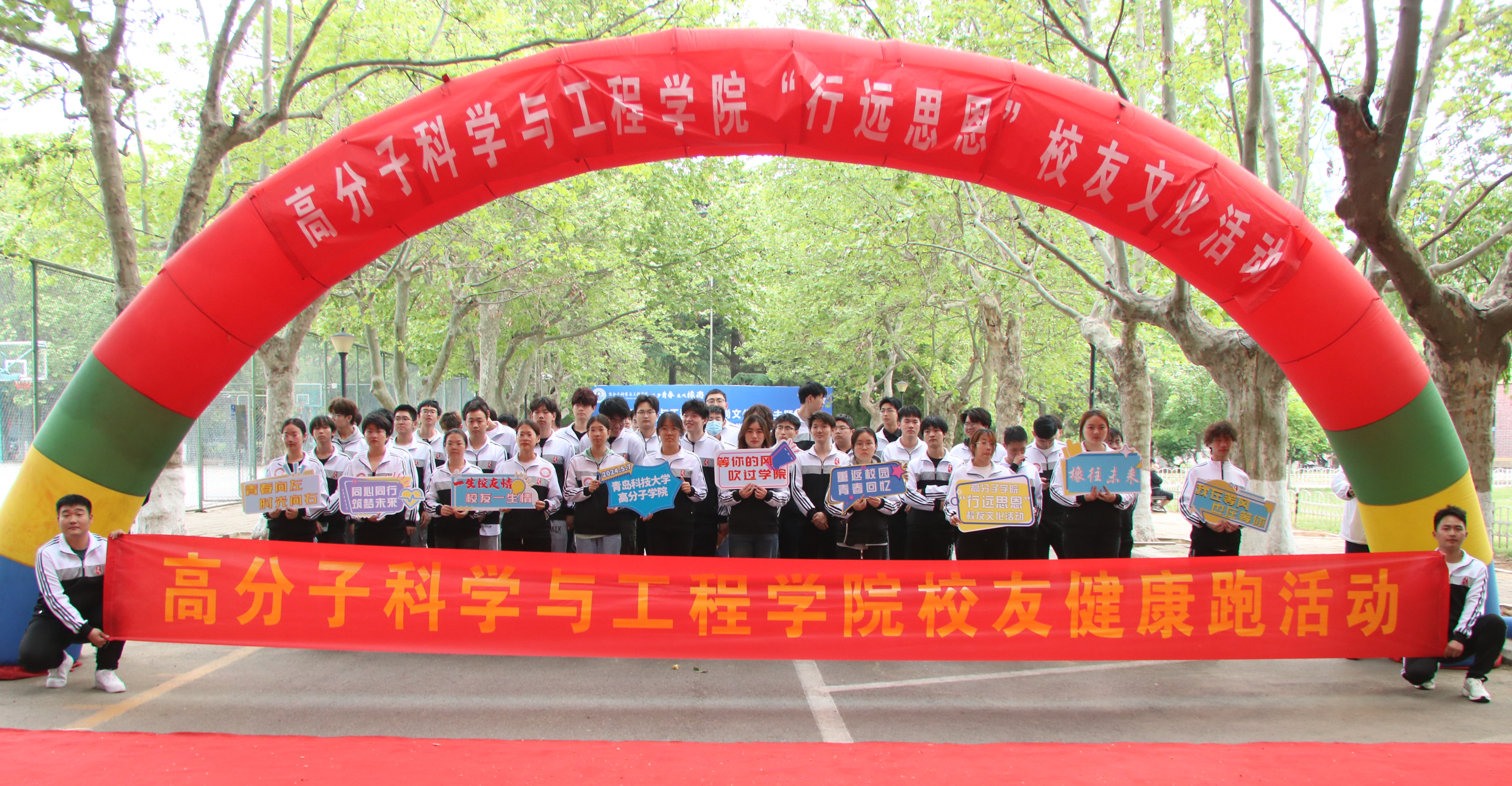 高分子学院院长张建明为校友健康跑环节鸣发令枪。学生代表们手持“同心同向 筑梦未来”“一生校友情”等打卡牌,对校友重返母校表示热烈的欢迎,并为校友健康跑领跑。活动还设置了参观橡塑重点实验室、校友游园打卡环节等,校友们在展板前驻足、凝思,共同见证学校各项事业高质量发展进程,感受青春的回响,积蓄前行的力量。与会校友、师生纷纷表示,要以热爱运动的态度对待生活,将感恩之心化为奋斗之力。