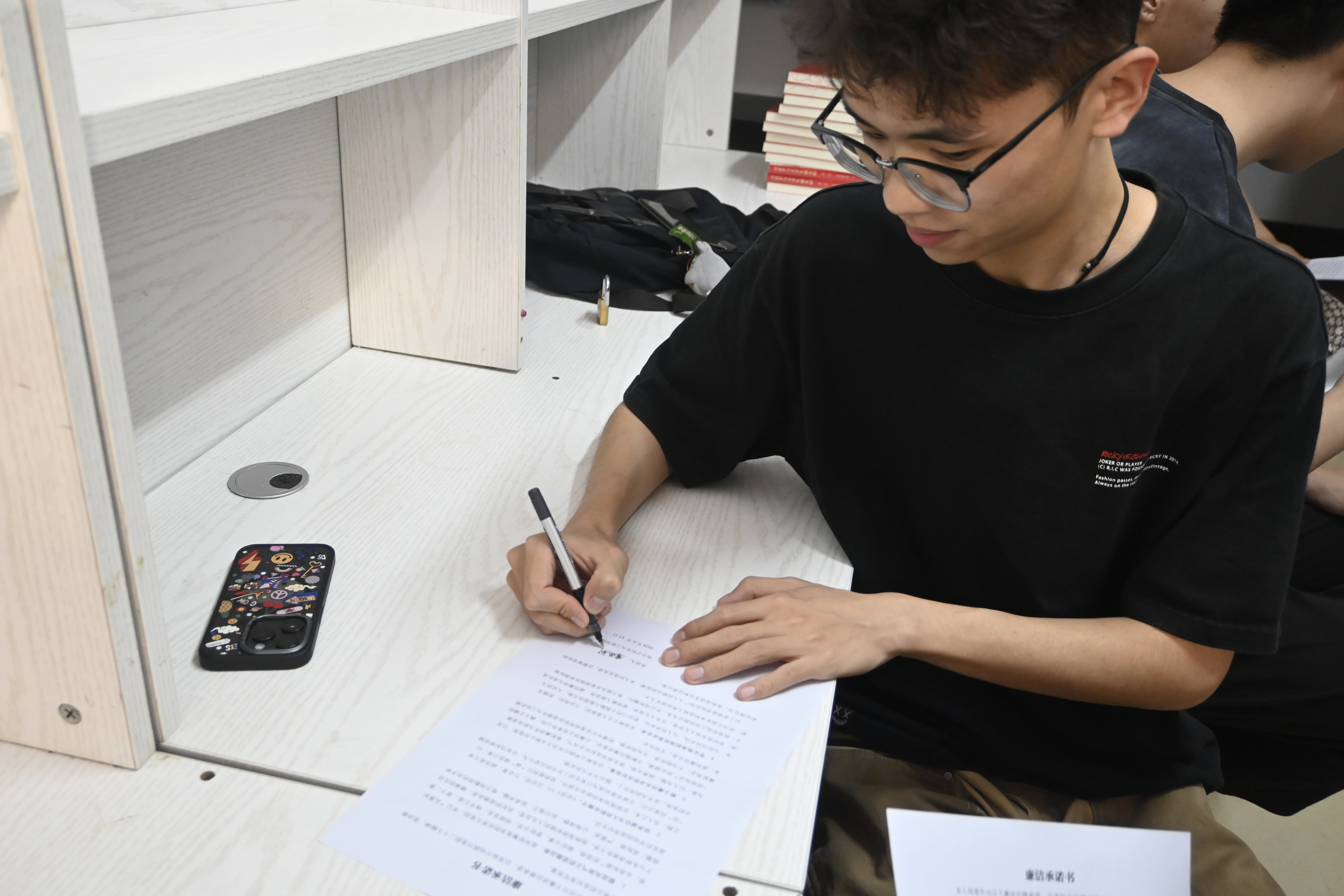 随后,毕业生党员代表签订了《廉洁承诺书》。宣宗伟为毕业生党员赠送了《习近平与大学生党员们(第二卷)》读本和“廉洁奉公 行稳致远”寄语书签。