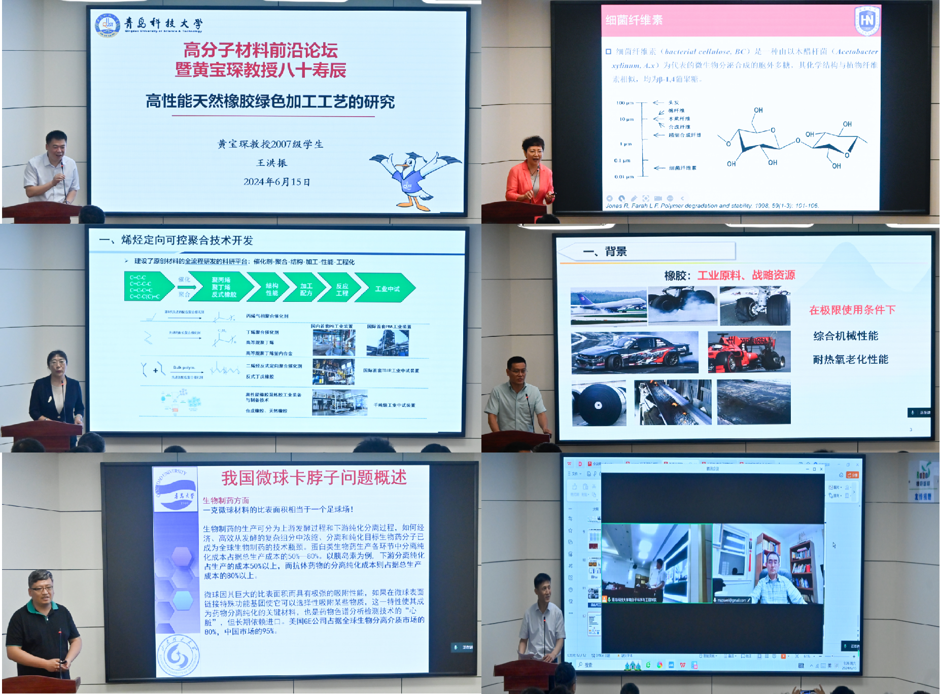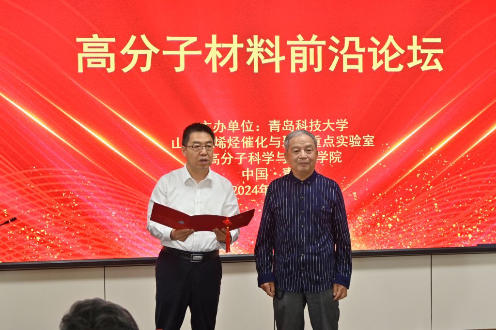 6月15日,为庆祝黄宝琛教授80寿辰,由山东省烯烃催化与聚合重点实验室和高分子科学与工程学院共同举办的高分子材料前沿论坛在高分子学院阿朗新科报告厅举行,青岛科技大学党委常委副校长吕万翔,山东理工大学副校长丛海林出席活动,会议由高分子学院党委书记宣宗伟主持。