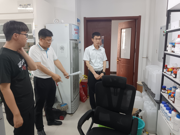 在检查过程中,宣宗伟强调假期中要加强对开展实验师生的安全教育,严格按照学校暑假期间实验室安全工作部署开展工作,确保实验室安全。要提前检查实验室各项应急设备物资保障情况,加强对重点危险源的监控督查,如遇突发事件,要及时启动应急预案,迅速展开应急处置,并及时向学院上报有关信息。孙举涛对检查过程中发现的实验室日常管理不规范、实验人员未穿戴防护服、违规使用电器、电源插座不固定、气瓶不固定等问题,要求各实验室立即整改,确保不留隐患。