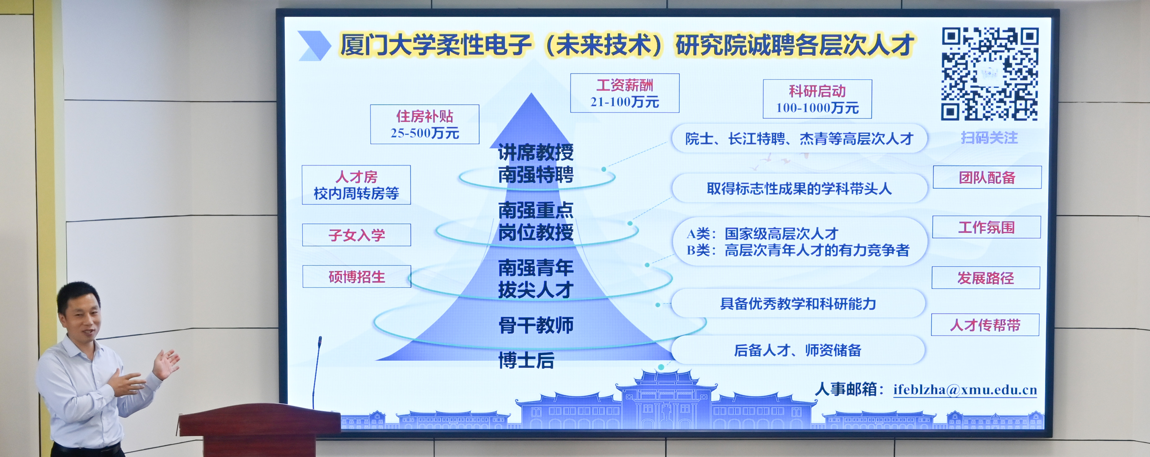 为使学生更全面地了解2025年研究生招生情况,让学生有明晰复习规划和报考目标,9月22日,学院在高分子学院楼401会议室组织了厦门大学柔性电子(未来技术)研究院2025年研究生招生宣讲会,宣讲会由谢国华教授主讲。此次招生项目面向高分子、化学、化工材料、物理、生物、电子信息、人工智能、光学工程等相关专业2025年应届本科或硕士毕业生。