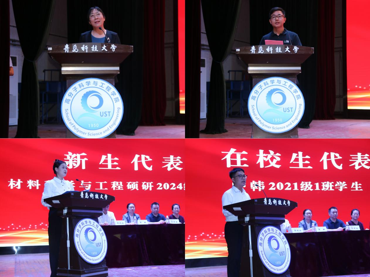 教师代表贺爱华教授对新同学加入高分子学院表示热烈欢迎,她殷切寄语新同学要尽快适应校园生活,勉励大家在四年的大学学习生活中积极进取、不懈奋斗,开启人生新篇章,成为德才兼备的高素质人才。