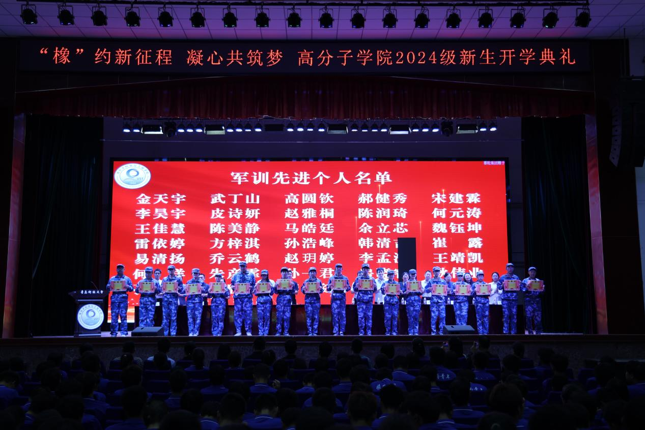 橡塑重点实验室副主任刘伟宣读《关于表彰2024级高分子学院军训先进个人的决定》并为军训先进个人同学颁发荣誉证书。