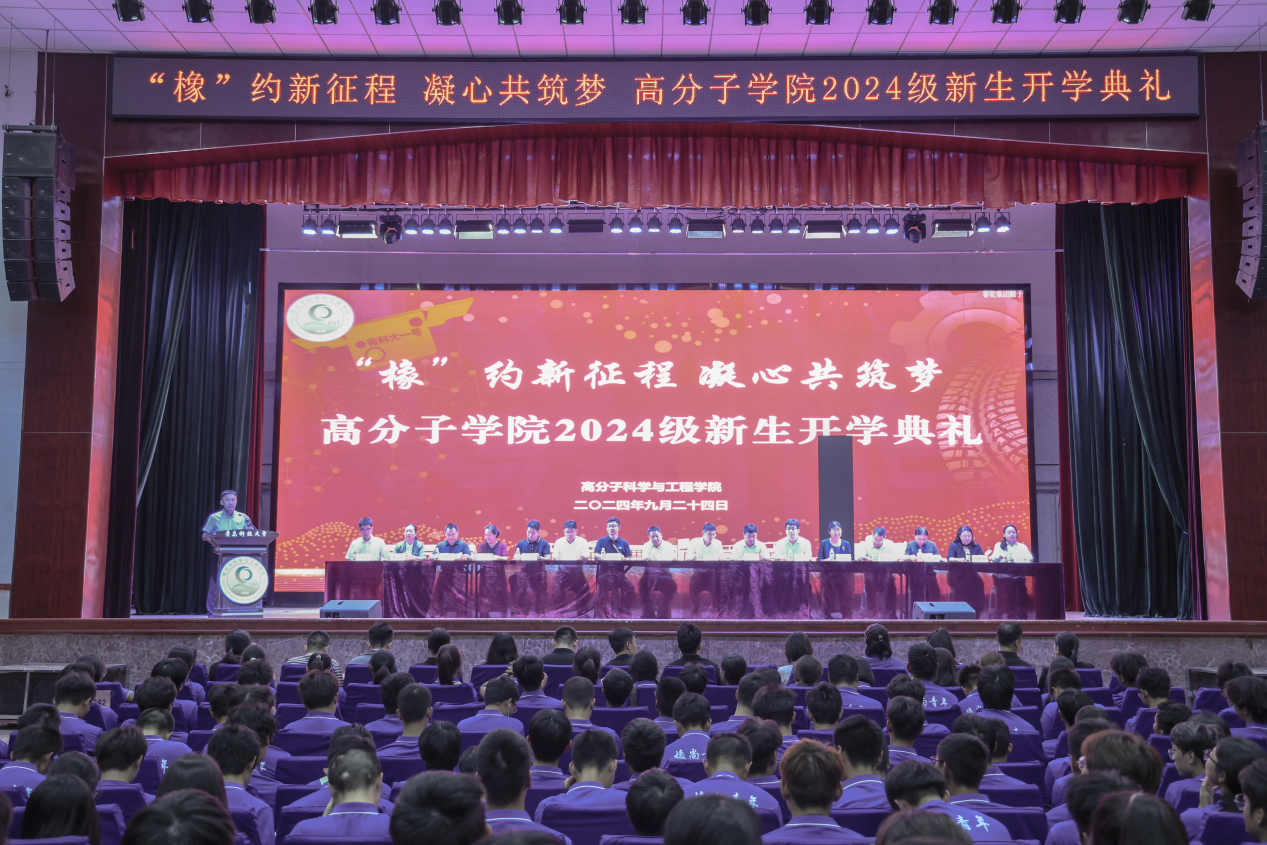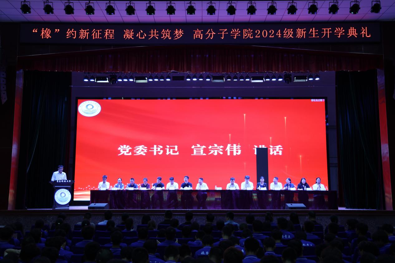 9月24日下午,高分子学院“橡”约新征程 凝心共筑梦2024级新生开学典礼暨班主任聘任仪式在四方校区西礼堂隆重举行。学院院长张建明、党委书记宣宗伟、副院长王庆富、副院长孙举涛、副院长刘恒、各教研室主任、全体班主任、全体辅导员以及2024级全体新生参加了本次大会。大会由党委副书记兼副院长贾明明主持。