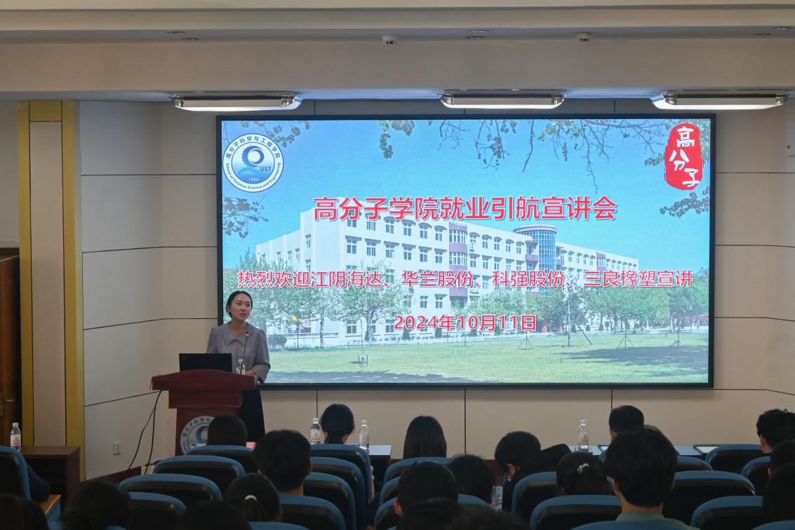 为促进校企合作,扎实推进2025届毕业生就业指导与服务工作,帮助学生深入了解当前就业环境,树立正确的成才观、就业观和择业观,努力提高及实现毕业生高质量就业,10月11日,学院在高分子学院楼401室召开就业引航宣讲会——江苏企业专场。