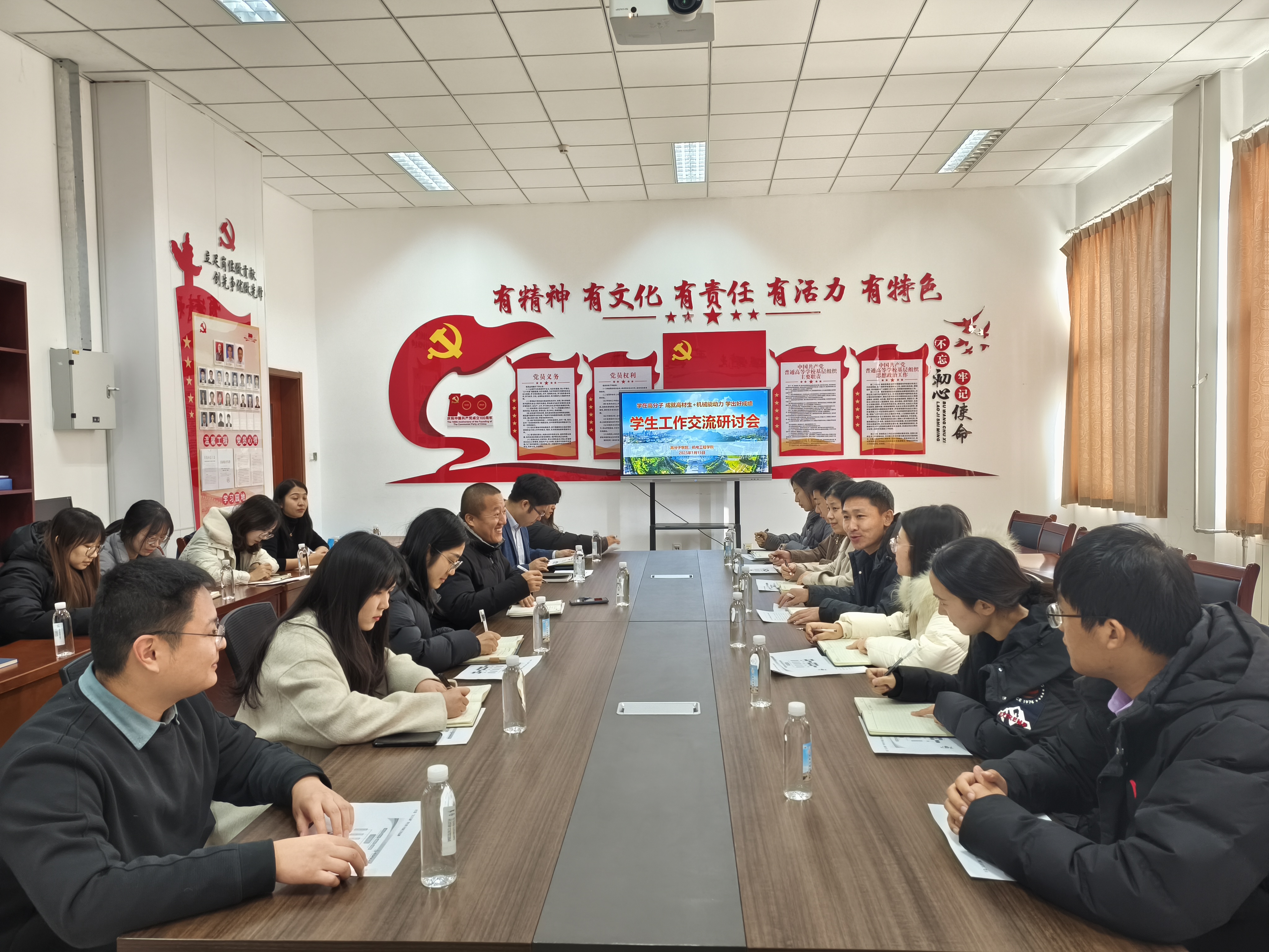 交流会上,杨小明介绍了机电学院的发展历程,对贾明明一行表示欢迎;双方就思想政治教育研究、学院特色品牌工作和项目建设思路进行交流探讨。会上,贾明明介绍了高分子学院学生工作的相关情况,对机电学院表示感谢,并就揭榜挂帅项目的建设思路及任务分工进一步明确。双方一致同意今后将加强工作研讨和交流合作,促进两院学团工作携手共进。