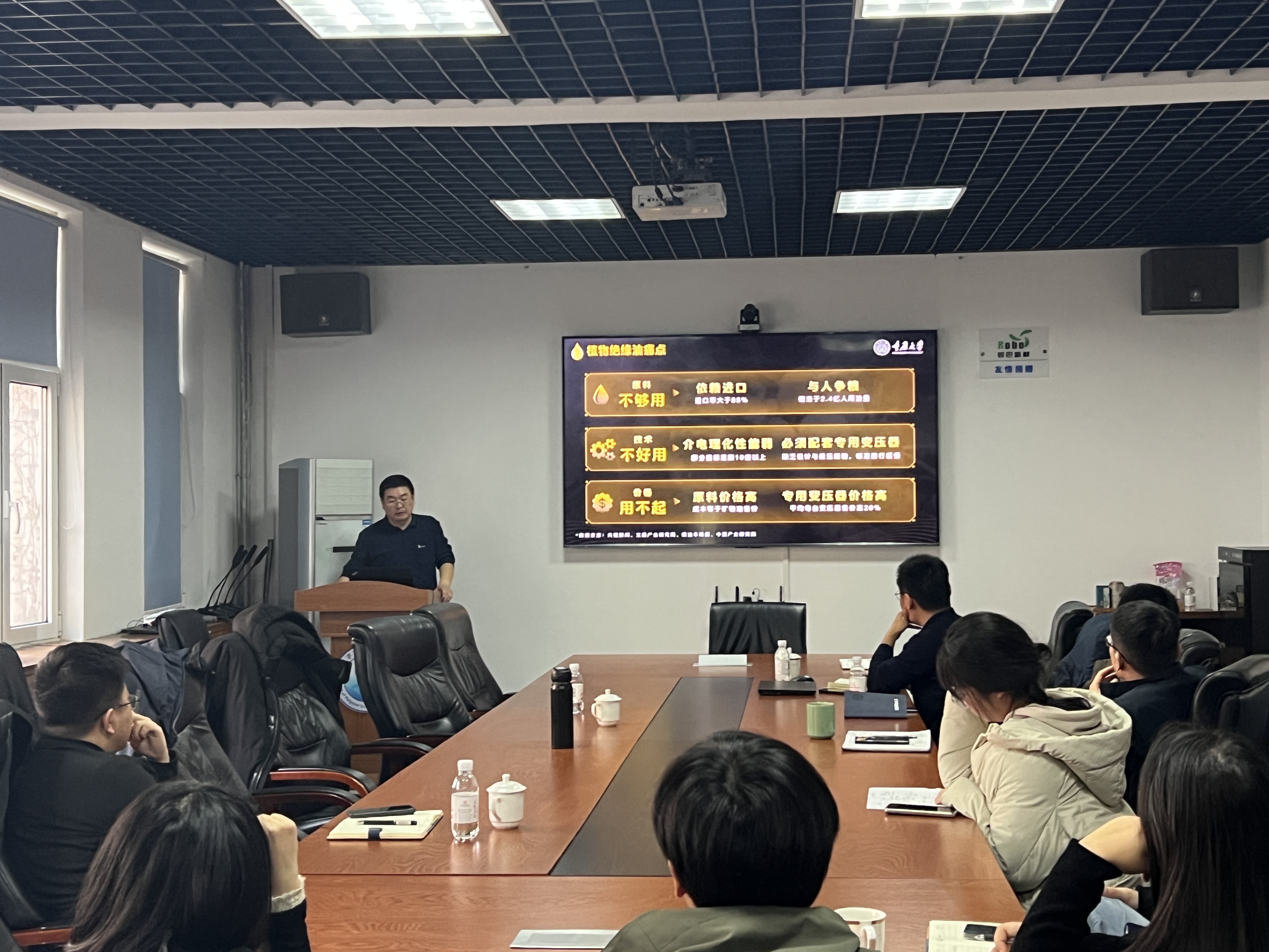 褚庆柱结合自身经验,以中国国际创新大赛内在逻辑为切入点,围绕着项目选题、逻辑构建、技术优化、团队协作等方面提出了具体建议。他强调,学科竞赛项目要紧密结合国家战略需求和行业发展方向,注重产学研深度融合,同时要突出项目的独特性和可行性。他还鼓励团队师生加强与行业企业的合作,提升项目的市场竞争力和落地转化能力。学院年度种子团队进行了项目汇报,褚院长听取了汇并对项目给予指导。