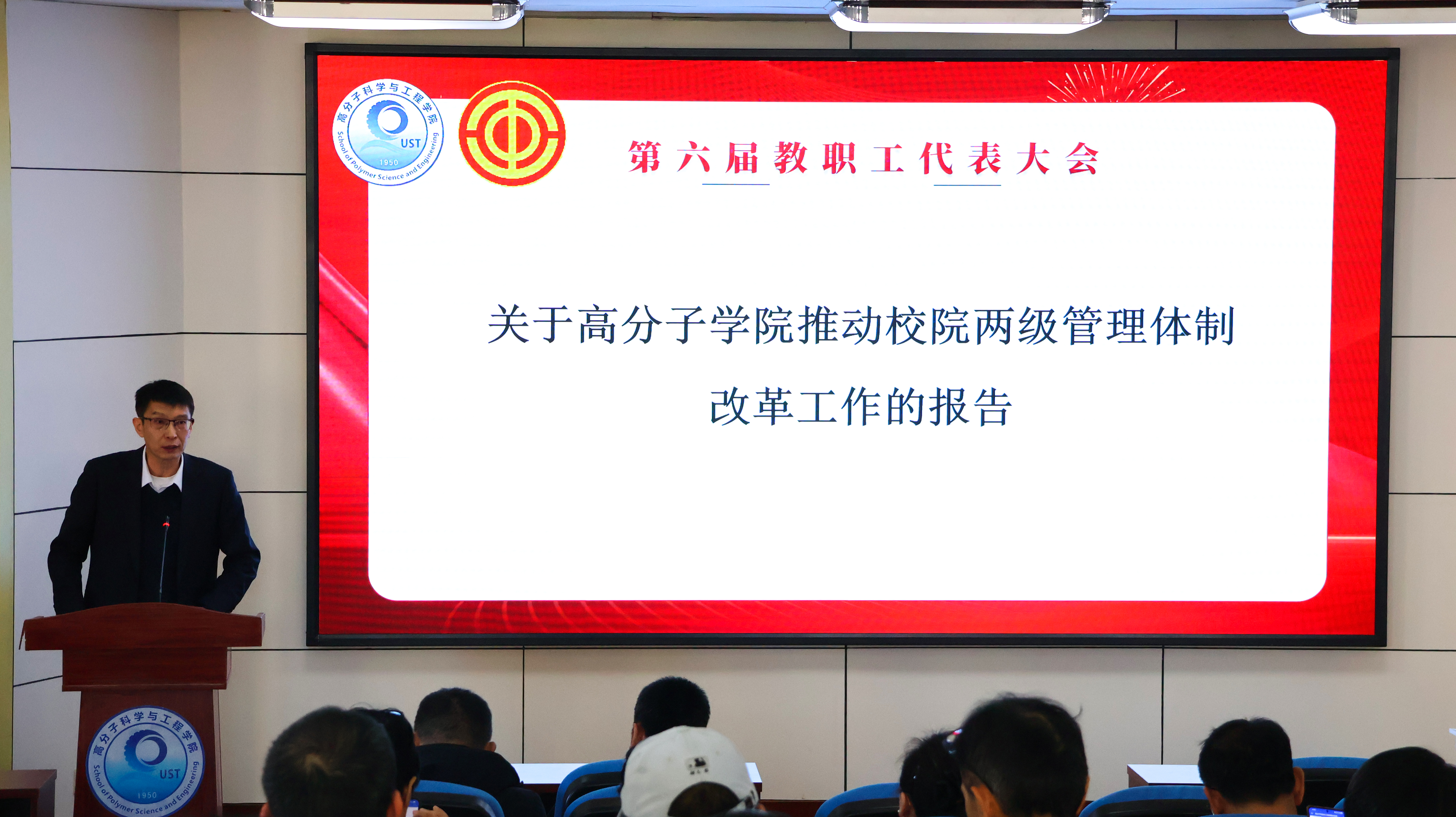 3月18日,高分子学院第六届教职工代表大会第一次会议在高分子学院楼401会议室顺利召开,学院“教代会”代表共71人参加了会议。会议由学院橡塑材料与工程省部共建教育部重点实验室副主任兼学院工会主席刘伟主持。