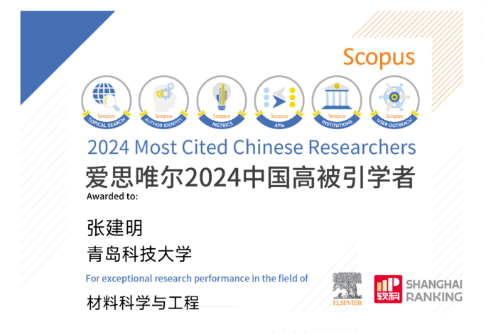 青岛科技大学高分子科学与工程学院的张建明教授已经连续三年入选“材料科学与工程”学科 “中国高被引学者”榜单。