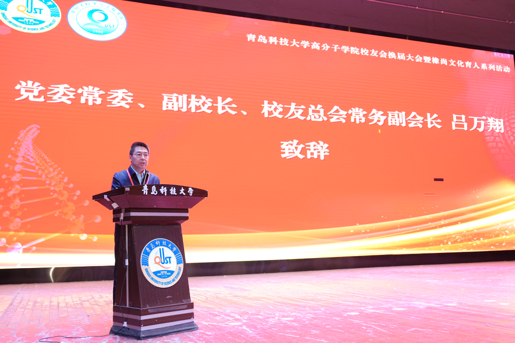 为深入贯彻落实党的二十届三中全会精神,凝聚校友资源力量,不断提升有组织服务经济社会发展能力,5月17日,高分子学院在四方校区举行校友会换届大会。青岛科技大学党委常委、副校长、校友总会副会长吕万翔出席活动,党委常委、统战部部长秦姣、中国橡胶工业协会原会长范仁德、山东橡胶行业协会会长张洪民、株洲时代新材首席科学家杨军,高分子学院党政领导班子、各届校友代表、在校师生代表等800余人参加会议。活动由高分子学院党委书记宣宗伟主持。