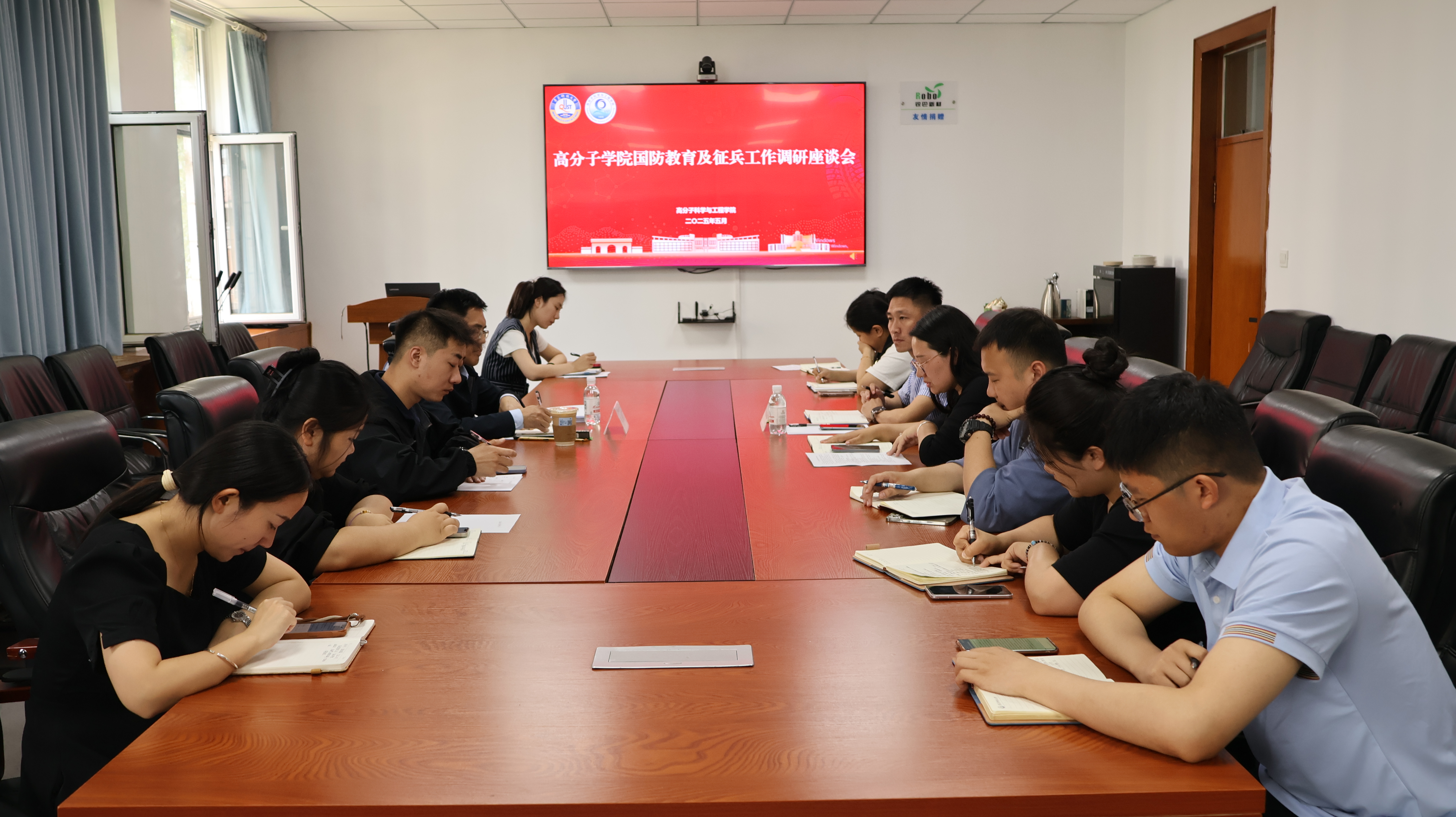 为进一步将学院征兵工作做实做细,鼓励更多青年大学生响应国家号召参军入伍,实现强军有我、强国有我的铮铮誓言,5 月 22 日,学生工作处(部)副处长兼武装部副部长李春家来高分子学院进行调研。学院党委副书记兼副院长贾明明及全体辅导员参加会议。
