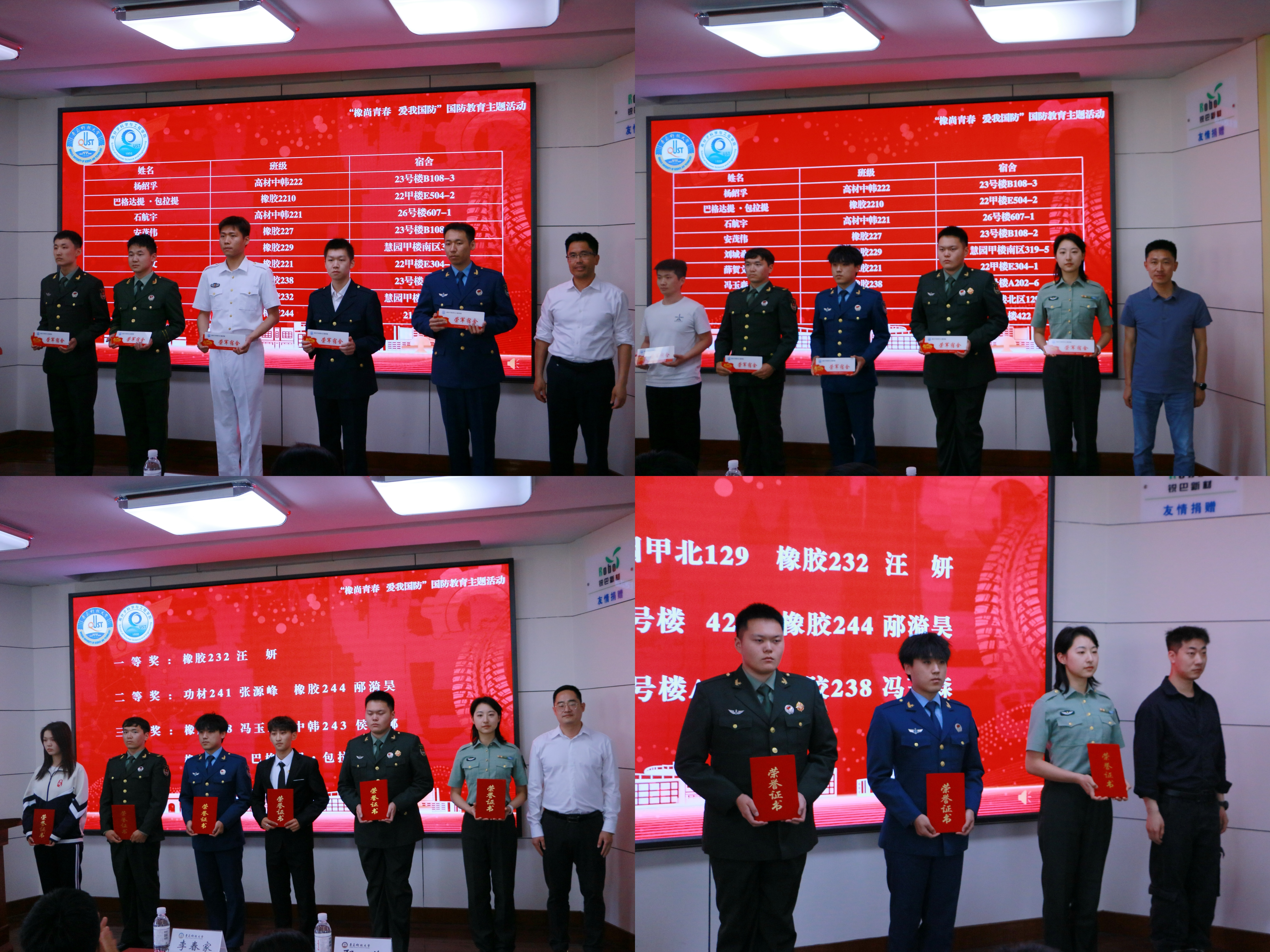 随后,李春家和贾明明分别为退役复学学生宿舍授“荣军宿舍”标牌,激励退役复学学生发挥榜样带头作用;学院团委副书记兼学工办副主任尹德琪、学院宿舍工作负责人王亚宁分别宣读了“爱我国防”演讲比赛获奖学生名单和退役复学学生宿舍风采展获奖同学名单,并为获奖同学颁奖;学院团委副书记兼学工办副主任邢瑛宣读了《关于公布2025年青岛科技大学高分子科学与工程学院国防预征班入库花名册的通知》。
