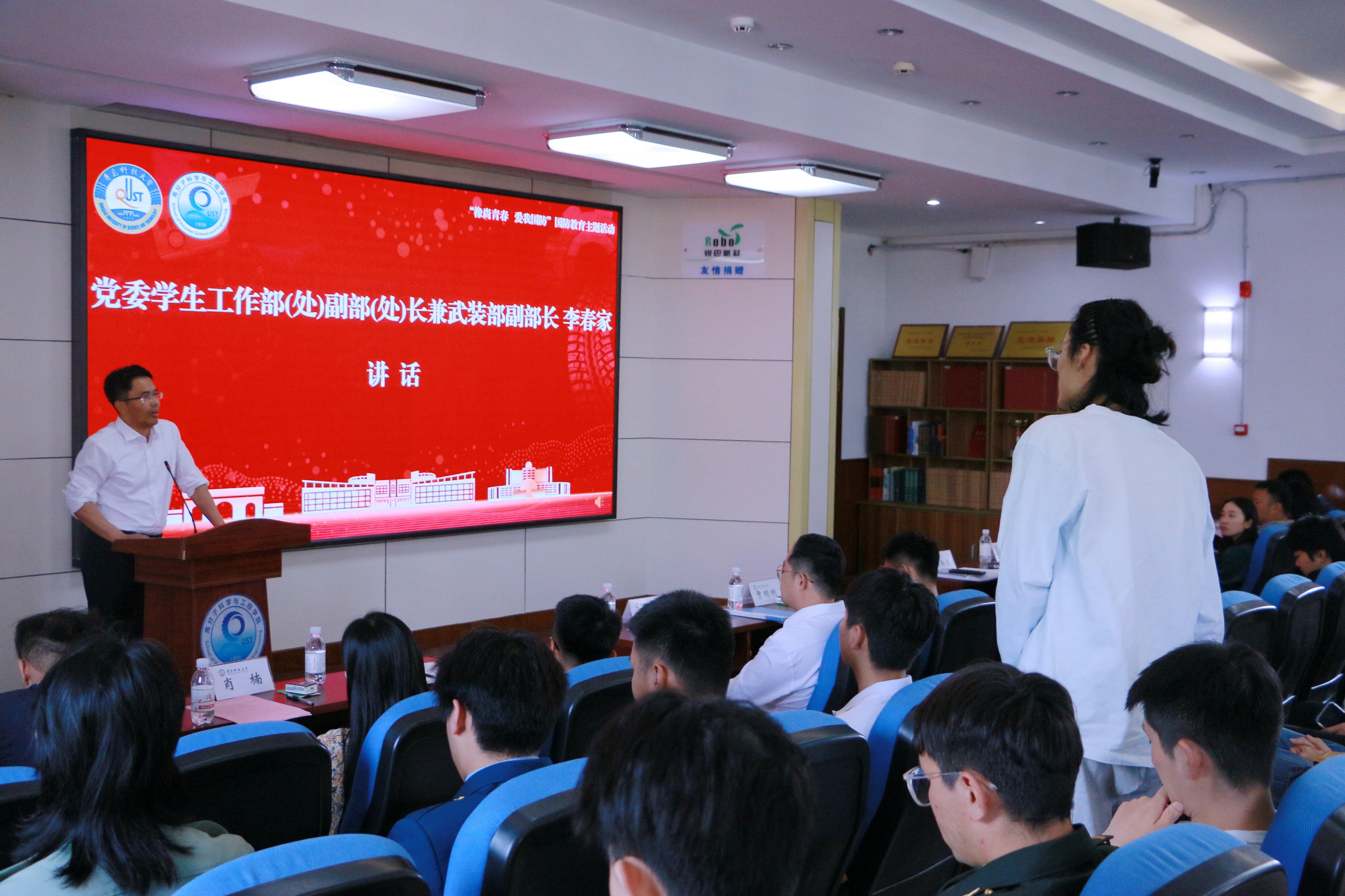 李春家高度赞扬了退役复学学生积极响应国家号召、勇于投身国防事业的精神,用生动的案例和详实的数据向同学们介绍了当前国际形势、国防建设的重要性及“五维四型”定兵新模式,号召新时代青年将个人理想融入强国梦、强军梦,发扬优良传统,踊跃应征入伍,在军队大舞台上书写绚烂华章,为国防事业贡献青春力量。