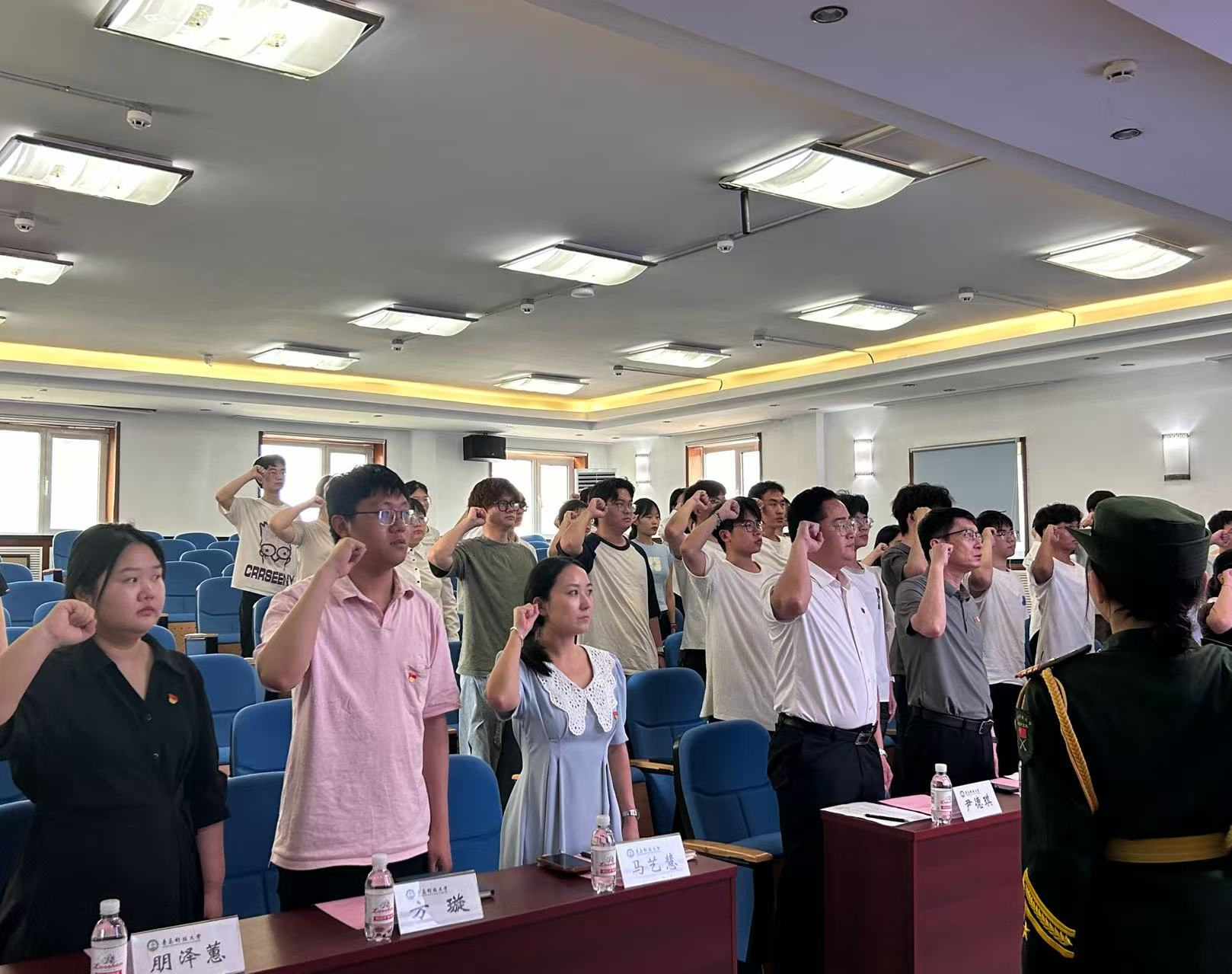 为进一步加强党员队伍建设,强化新发展党员的党性修养和使命担当,7月1日下午,高分子学院在学院401阿郎新科报告厅组织开展2025年上半年新发展党员集体谈话暨入党宣誓仪式,学院党委书记宣宗伟、学院党委副书记兼副院长贾明明出席仪式。