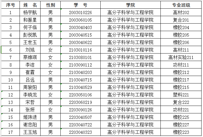 根据学校《关于评审2023年度青岛银行奖助学金的通知》的相关要求,结合高分子科学与工程学院实际情况,经学生自主申请、学院审核,拟确定杨宇航等17人获得青岛银行奖学金,沈妤等8人获得青岛银行助学金。名单如下: