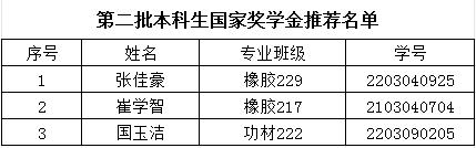 高分子学院奖学金评审委员会通过现场评审,最终评选出张佳豪等3人为第二批本科生国家奖学金推荐人选。现将名单公示如下: