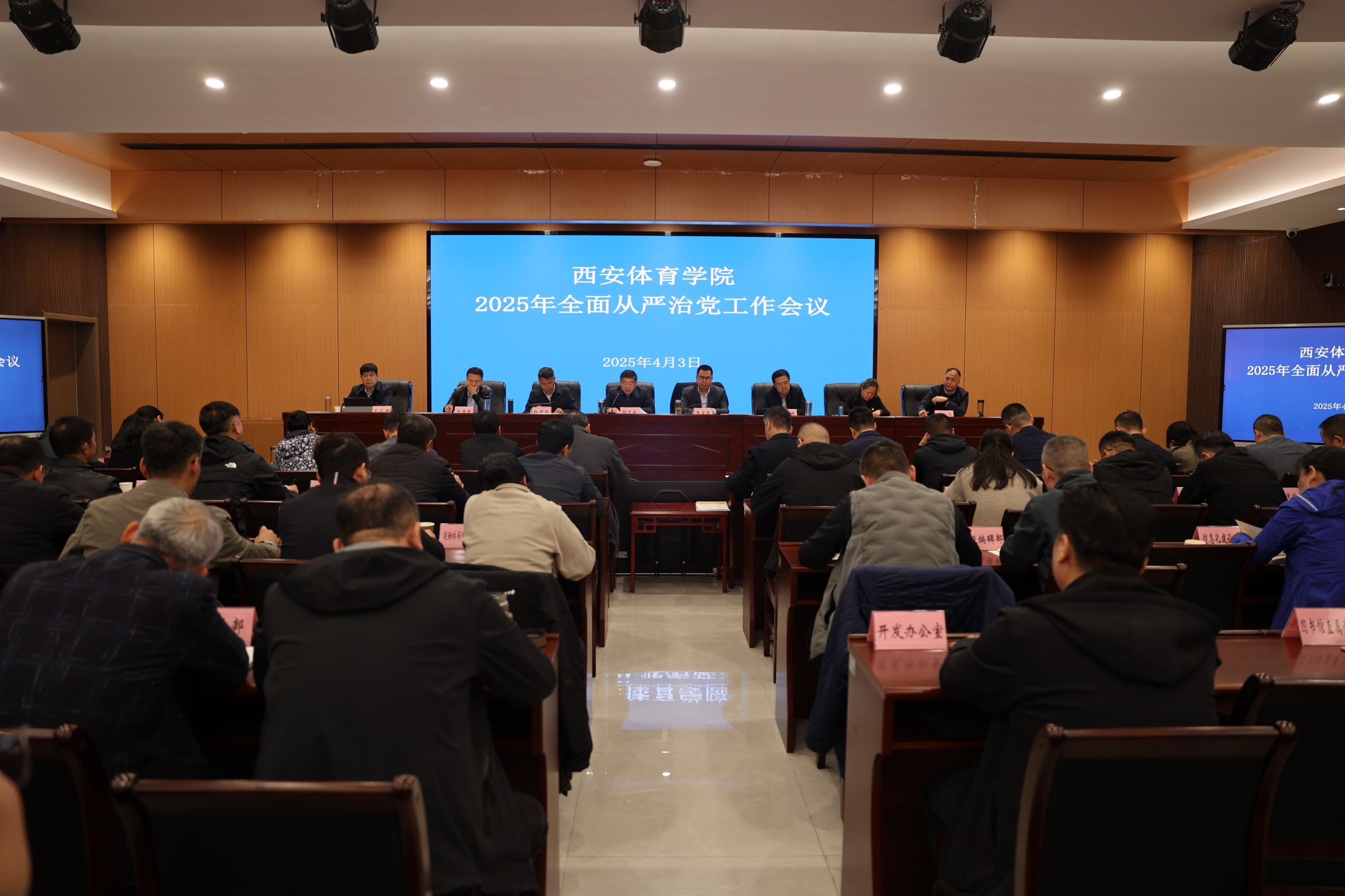 本网讯 4月3日,我校召开2025年全面从严治党工作会议,深入学习贯彻习近平总书记在二十届中央纪委四次全会上的重要讲话和全会精神,认真贯彻落实教育部全面从严治党工作视频会、十四届省纪委四次全会和全省教育系统全面从严治党会议精神的部署要求,总结2024年学校全面从严治党工作,分析研判形势,部署2025年重点任务。校领导、党委委员、纪委委员、副处级以上干部、纪检监察机构全体人员、纪检委员等参会。