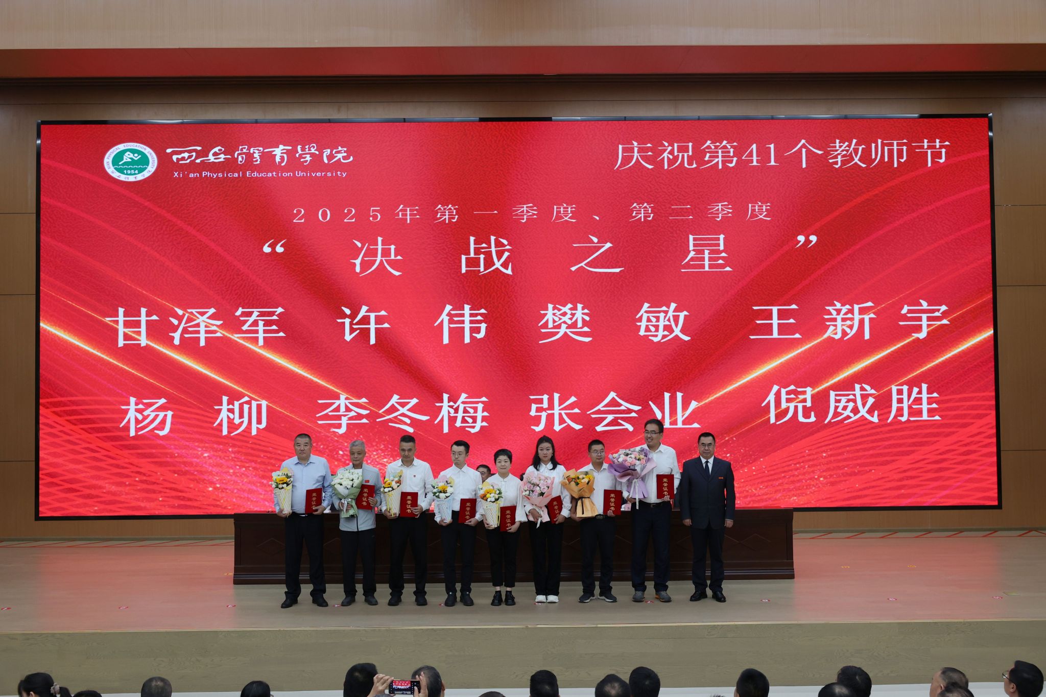 校长李富生指出,教师是学校发展的第一资源,此次表彰既是对广大教师辛勤付出的充分肯定,也是弘扬尊师重教优良传统的具体体现。近两年,学校制定实施“三年行动计划”,创新开展“三大战役”,办学理念日益清晰,硬件条件显著改善,综合改革全面推进,教学科研、竞赛训练、人才培养质量、文化影响力等方面持续突破,已加速迈入全国体育院校第一方阵。广大教师要坚定理想信念,涵养教育情怀,强化责任担当,争做“有情怀、有境界、有水平”的新时代大先生;要持续提升教书育人、科研创新与服务社会的能力,把个人奋斗融入学校发展与国家战略之中,以奋斗姿态接续发力、砥砺前行,为实现西体美好明天贡献智慧和力量。