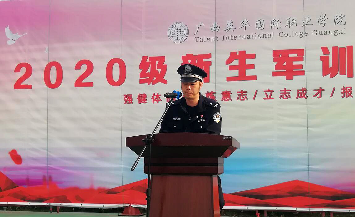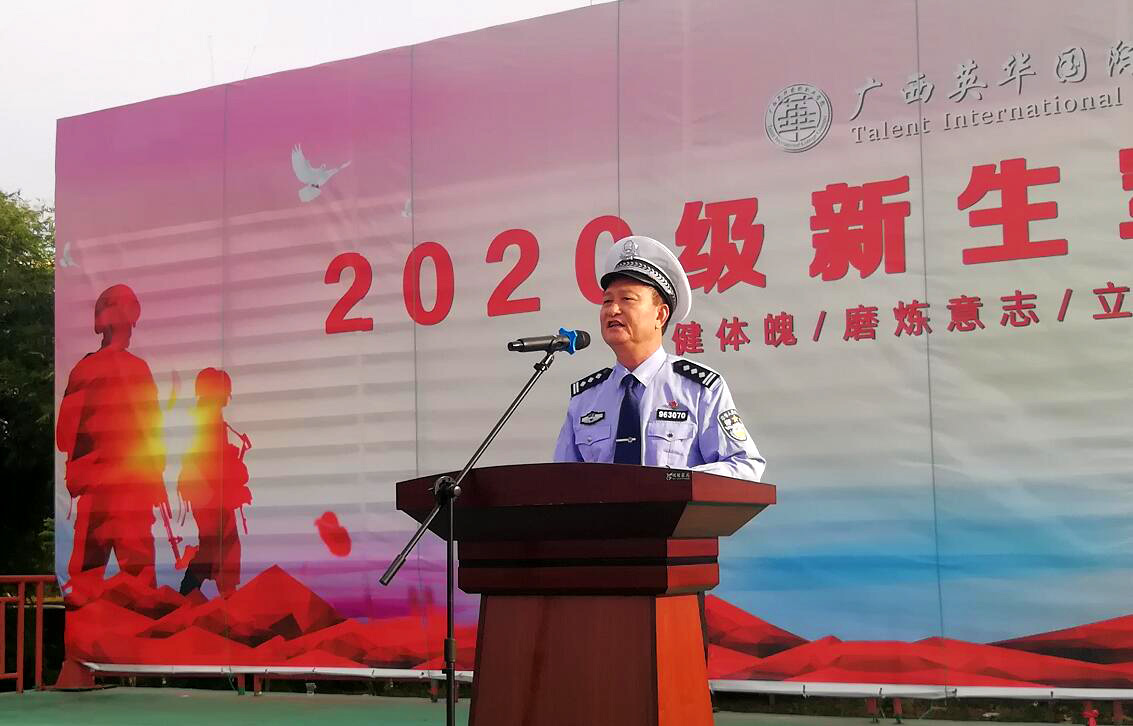 为加强学生安全意识,提高自我保护能力,杜绝违法违纪行为发生,打造“法制校园”、“平安校园”。11月10日上午,广西英华学院保卫处邀请钦州市公安局交警支队一大队大队长胡汉鉴和钦州市钦南区南珠派出所副所长陈庆华在学校军训操场为2020级新生开展交通安全、法制教育主题宣讲。