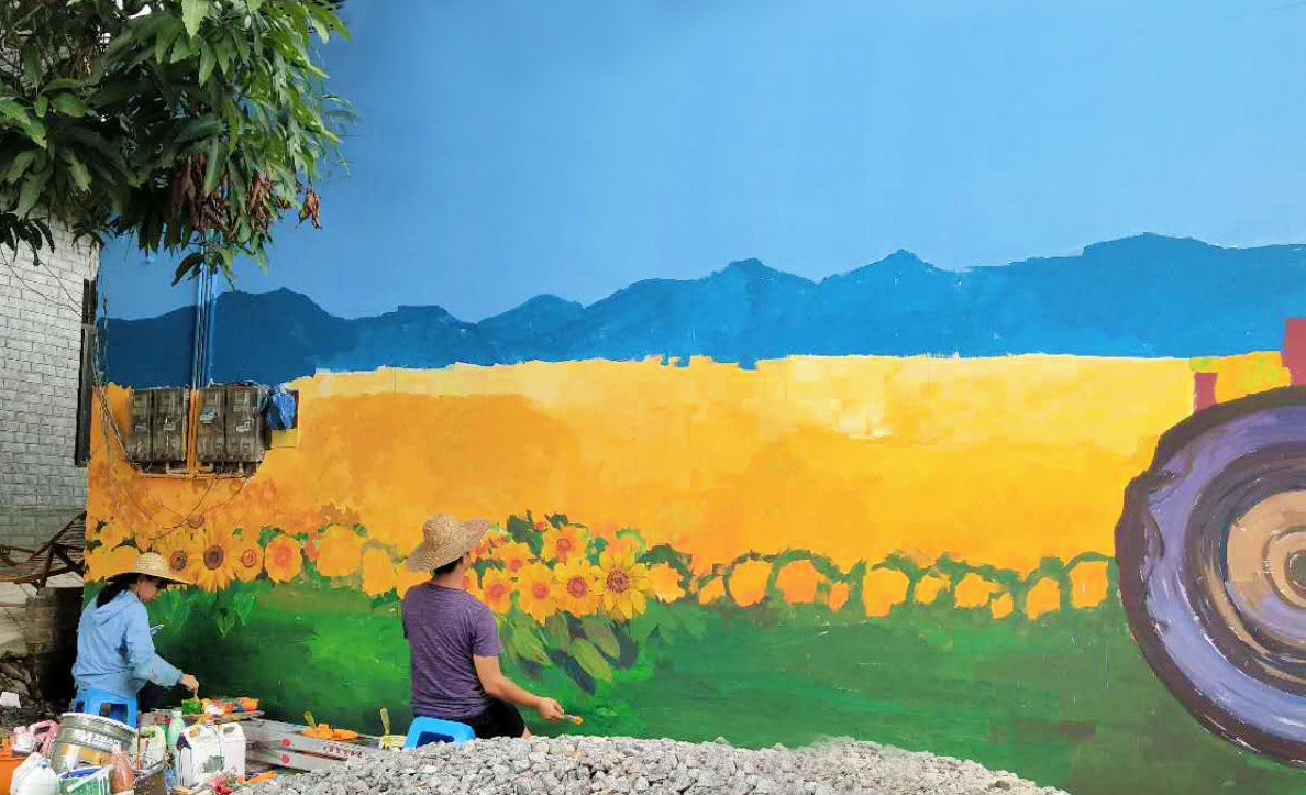 邹异东说,画墙绘的时候真的是早起晚归,加班加点地工作。虽然有点辛苦、有点累,但是能和大家一起完成这幅墙绘,让当地群众可以看到乡村振兴的画卷,我觉得很有成就感、很有意义。
