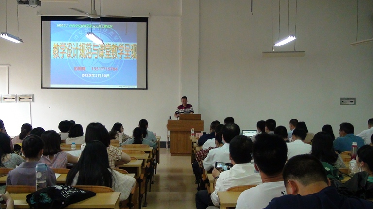 为进一步做好学校2020年广西职业院校教学能力大赛的准备工作,提升学校教师综合参赛实力,增强教师参赛信心,5月26日下午,广西英华学院邀请广西交通职业技术学院二级教授、硕士生导师、广西师范大学客座教授彭朝晖作《教学设计规范与课堂教学呈现》主题培训。学校各二级学院院长或分管教学工作的负责人、教务处、教学秘书、教研室主任、全体教师等参加培训。