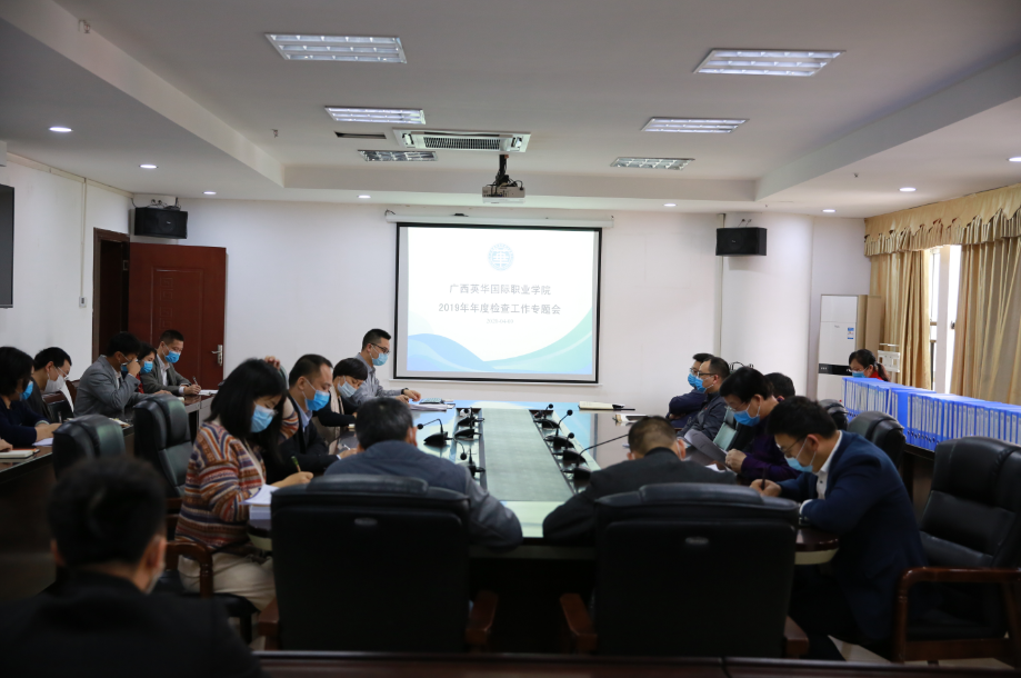 会上,学校党委书记黄友通报自治区教育厅《关于开展2019年度民办高校年检实地核查的通知》文件精神,要求各部门要严格按照教育厅年检工作要求中的8个一级指标、27个二级指标和36个三级指标,逐一对应整理支撑材料。