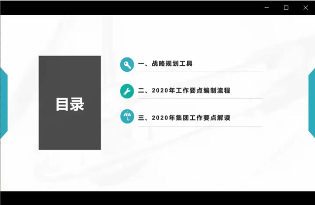 在交流研讨后,黄友总结此次培训是收获满满的一次培训,他要求,会后各部门要积极巩固学习成果,结合各部门的工作职责,充分学会利用工具,明确战略规划思路,找准战略方向;有层次地理清关键控制点,找准2020年部门工作重点;对重点工作进行结构化分解,努力消除“痛点”,打造“亮点”。