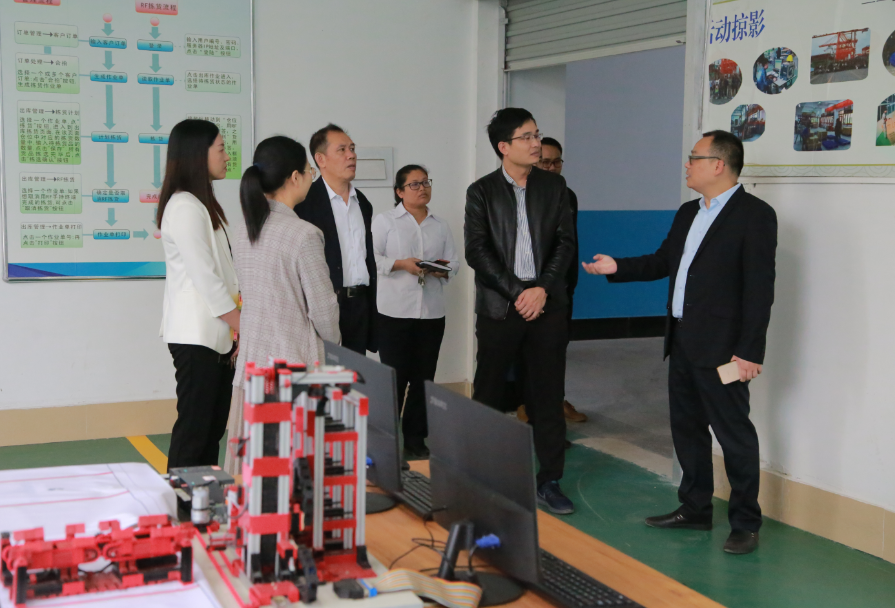 在调研过程中,一行人分别查阅学校扩招招生材料、学费收缴标准、师资条件、学生手册、人才培养方案、资助政策落实情况等材料,深入物流实训室、汽车整车实训室、路由与交换实训室等地参观,并向学校师生详细了解教学情况。