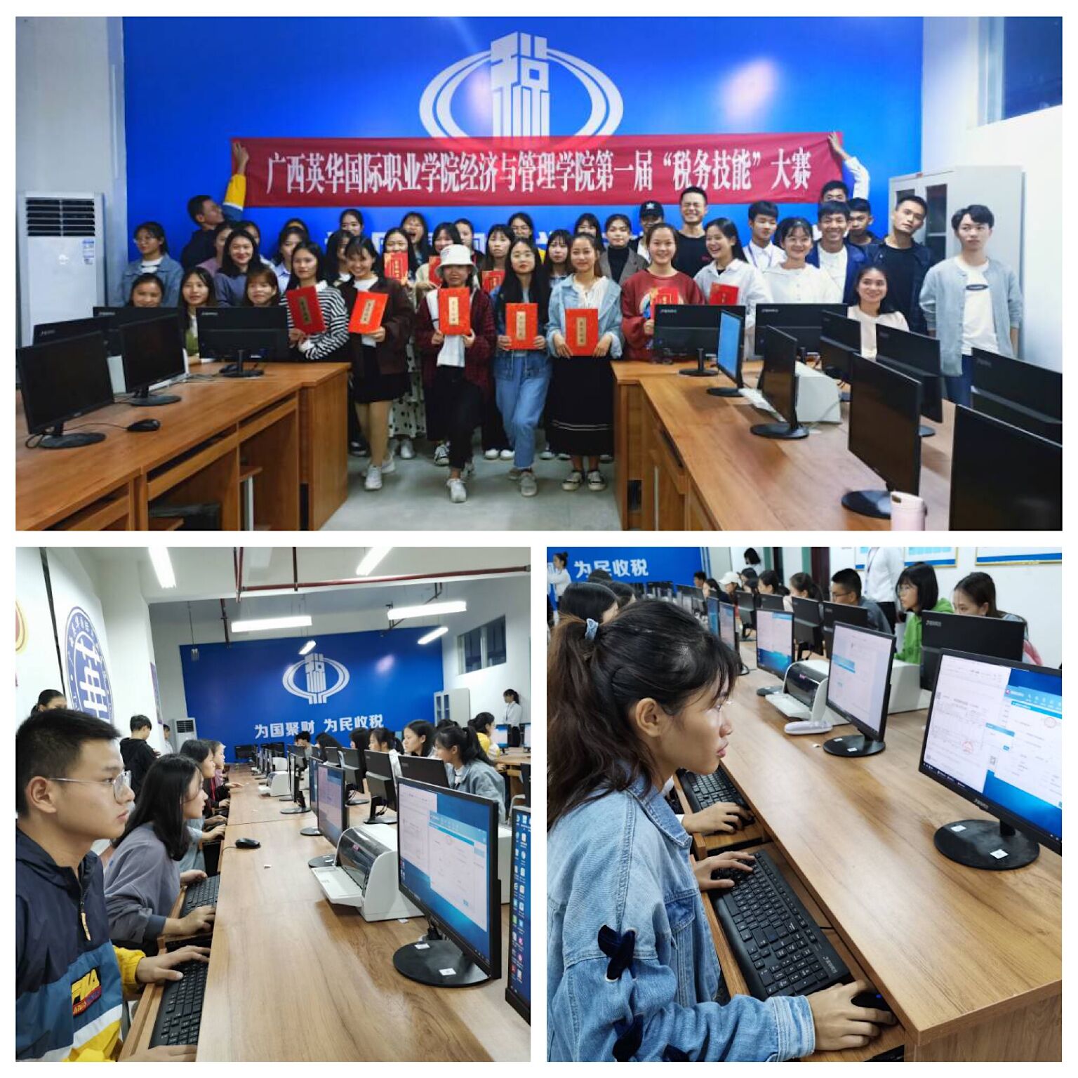 为丰富学生的课余文化生活,培养学生的专业水平、职业道德规范以及财税实操技能,以赛促学,整体提升全院财税相关专业建设水平和就业竞争力,经济与管理学院会计系举行第一届税务技能大赛,比赛得到同学们积的极响应,共有100多名同学进行同场竞技。比赛由会计系专业老师担当评委,参赛学生采取单人单机独立处理业务的形式进行竞赛,每人100分制,比赛过程中涉及财税知识全部依据当前最新的企业会计准则与税收法规。依托大赛指定比赛平台,考核参赛学生是否具备处理日常财税业务的能力,具体包括税务技能大赛处理、模拟税务局操作(报税、电子底账库管理等)、增值税防伪税控系统操作(包含增值税专用发票、增值税普通发票)、增值税发票网上申报等。