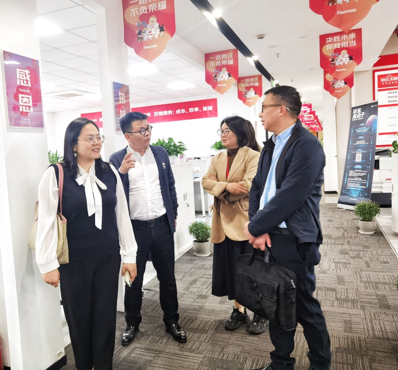 座谈会后邹利斌校长一行实地参观了市场运营部、电商客服中心的工作区,对企业的工作环境、企业文化、生活环境等进行深入调研。