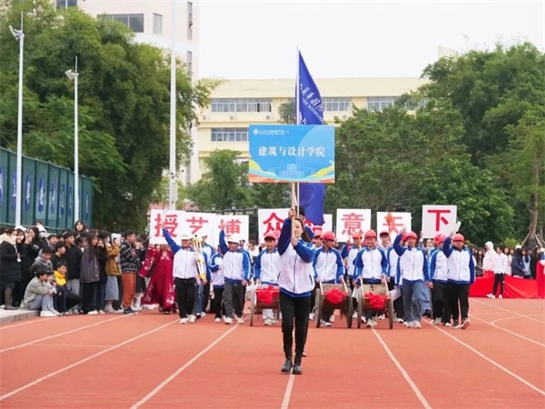 听,坚实的步伐,含着凛凛锐气;看,矫健的身姿,透出飒飒英风,别样的风采,高昂的斗志,迎面走来的是建筑与设计学院的学生,展示了他们必胜的信心!