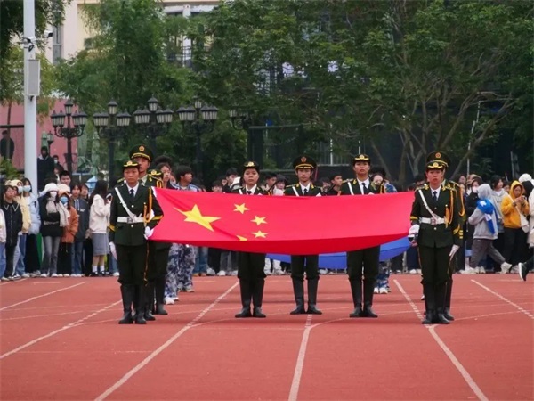 飘舞的彩旗彰显出新时代青年向着太阳、向着明天,是青春最靓丽的风景。