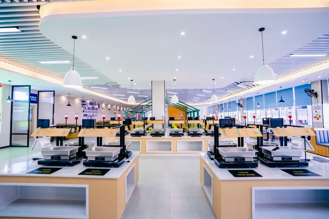 广西英华国际职业学院注重学生体验,为了给同学们一个更好的学习居住环境,不断改善环境,近期落成区内领先的智能食堂。智能化后厨设备,从源头保障食品安全;多种类的桌椅类型,多样化的区域氛围,打造沉浸式就餐体验;人性化自选菜区,按需取餐,菜品智慧称重计价,可刷脸结算。