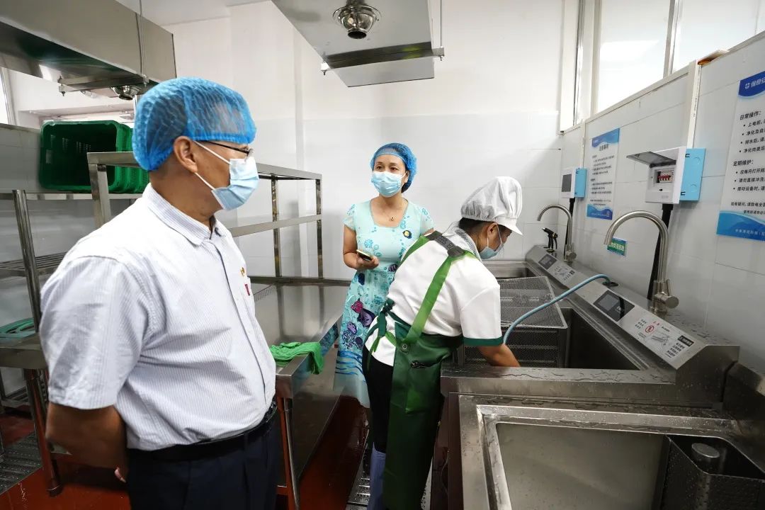 创新去农残,“高科技智能+明厨亮灶”,打造英华阳光餐饮 创建国家食品安全城市,广英职院高度重视并积极响应,由学校党委书黄家良带队学校检查组对学校食品安全管理情况进行全面自查,落实食品安全主体责任的基础上,针对学校食堂各个流程风险点,梳理出食品安全“四个到位”注意事项,即排查清除到位、洗消防护到位、健康管理到位、分餐管控到位,并围绕“四个到位”对学校食堂开展检查指导。