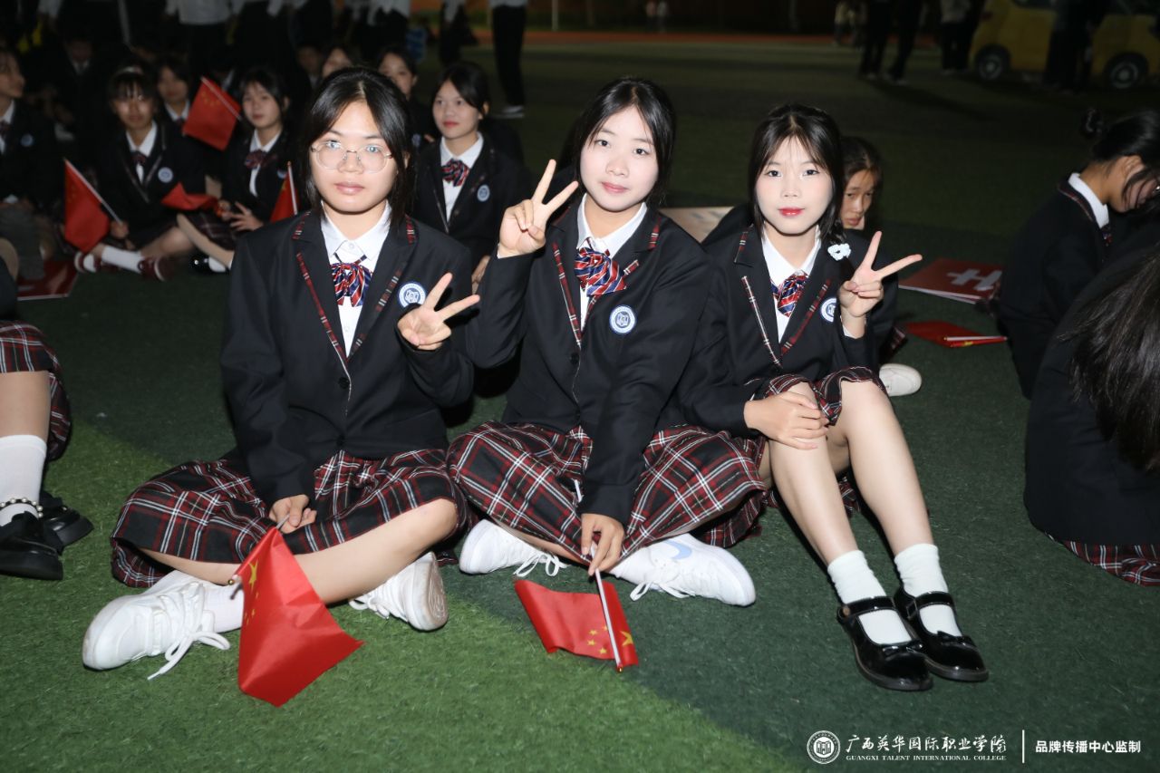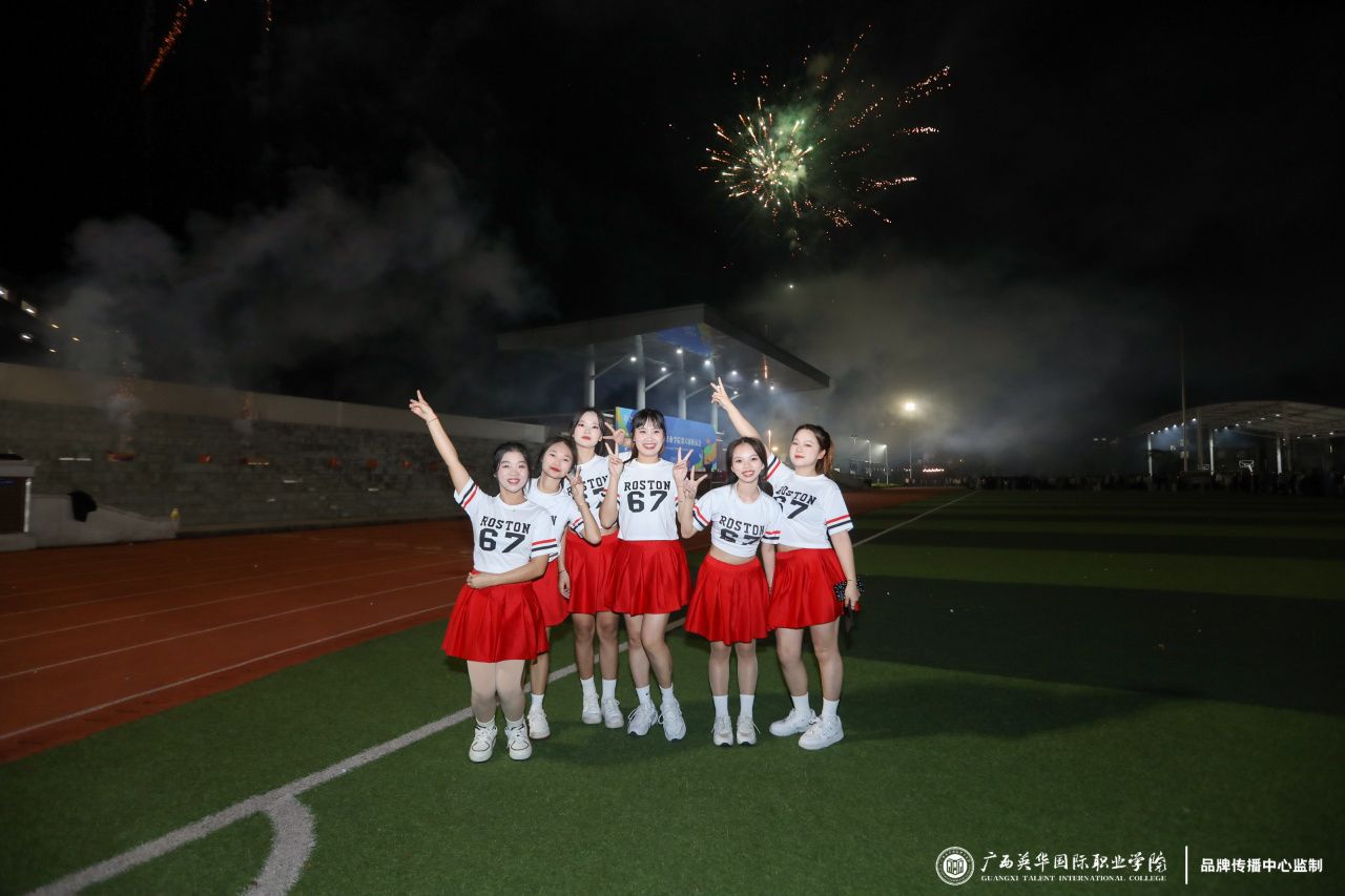 “请领导和观众席的同学移步到学院方阵营”,主持人话语刚落,灿烂的烟花在夜空中绽放!现场响起了长久而热烈的欢呼声,广西英华国际职业学院第六届校运会正式开幕!