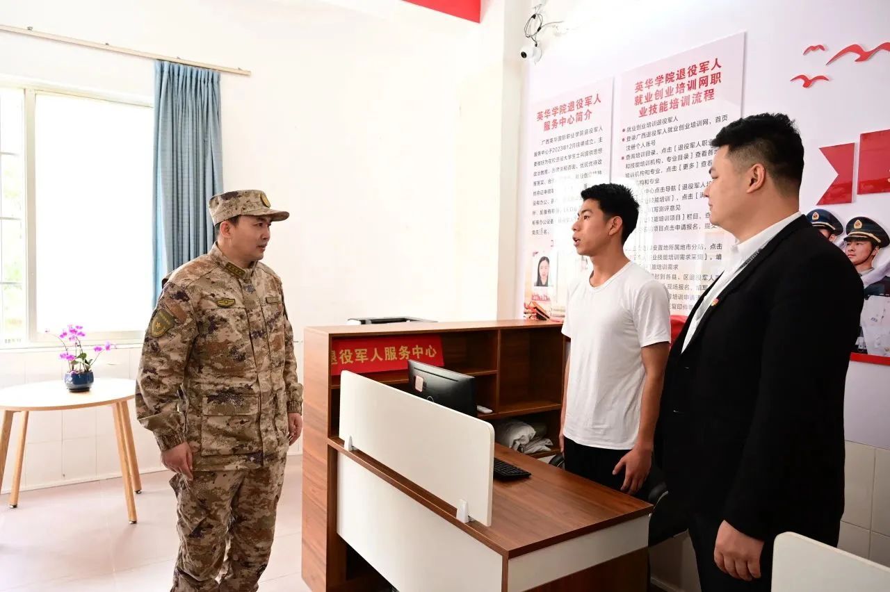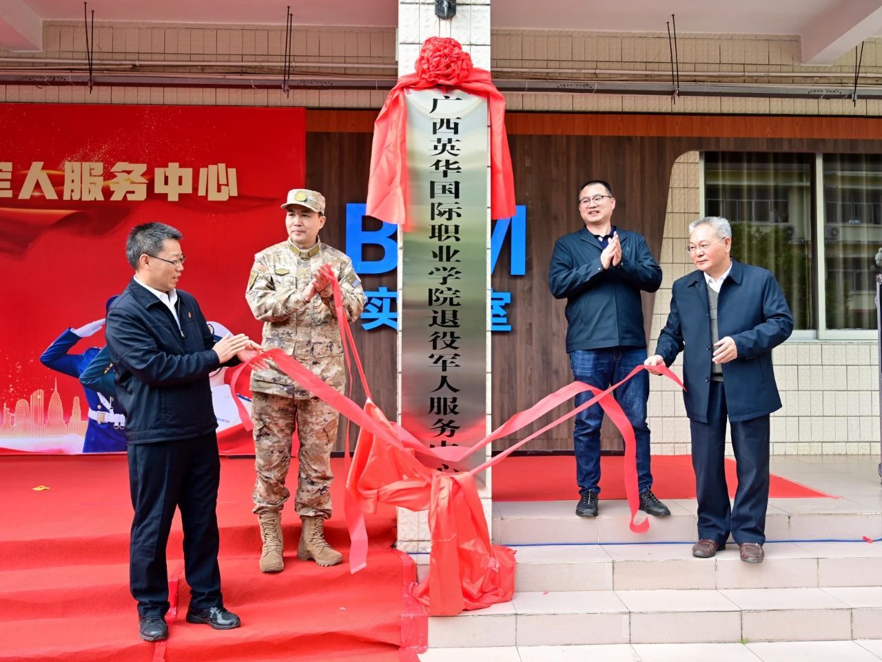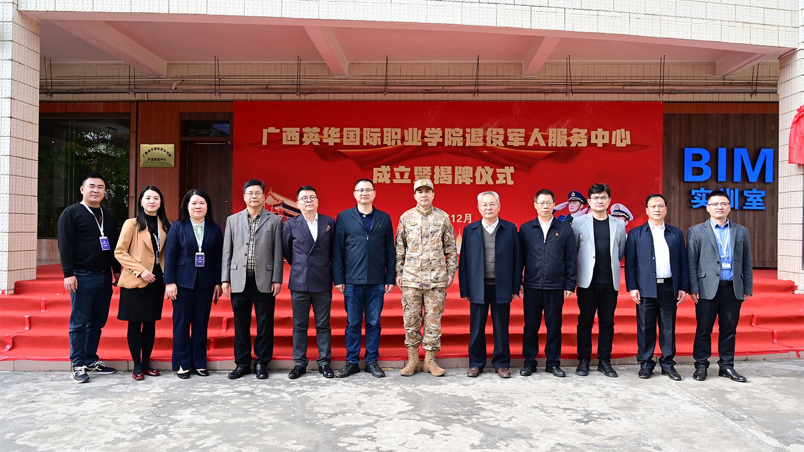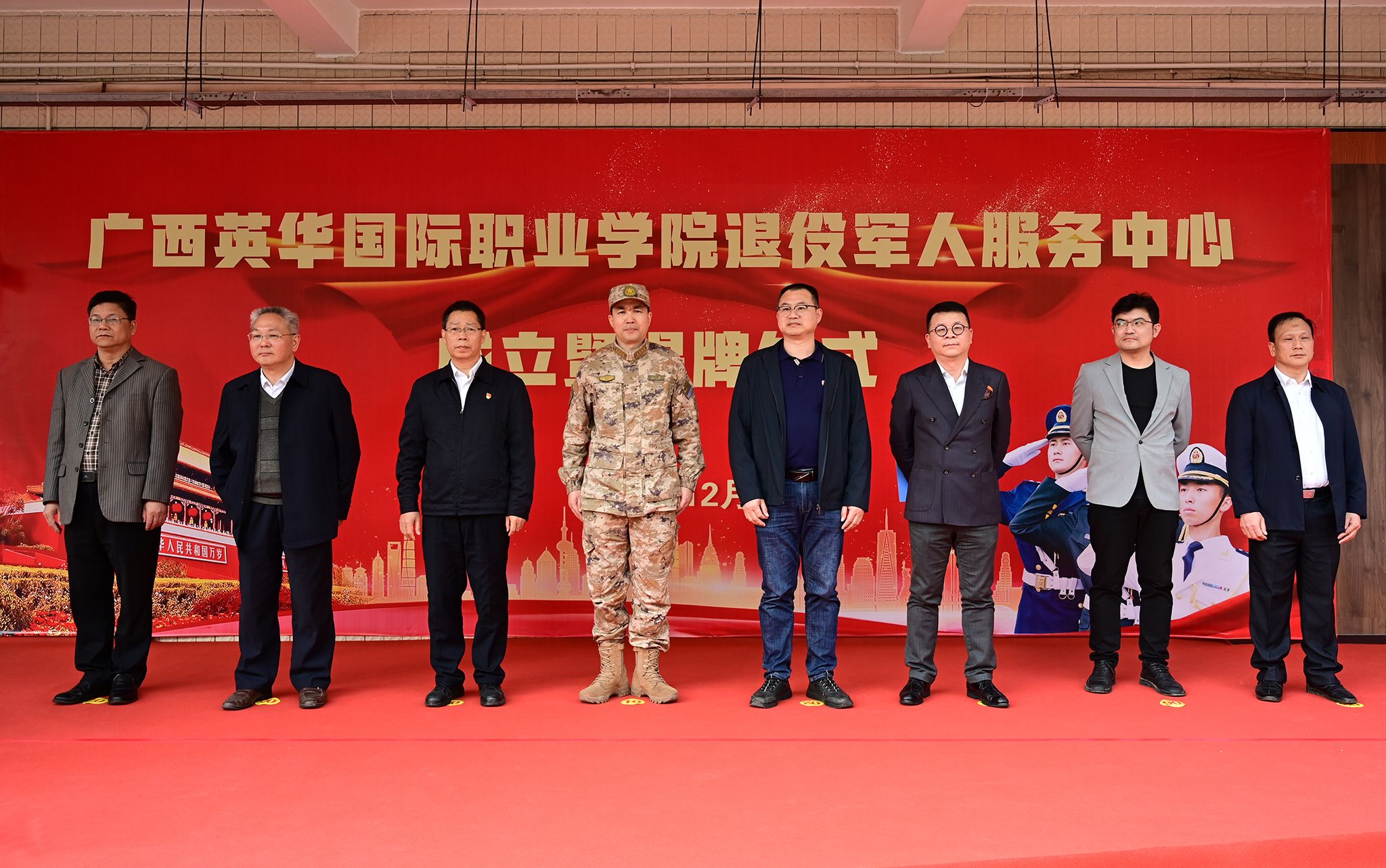 12月29日,广西英华国际职业学院退役军人服务中心成立暨揭牌仪式在学院博学楼前隆重举行。广西英华国际职业学院退役军人服务中心是钦州市首家高校退役军人服务中心,旨在为退役军人提供更加便捷、高效、优质的服务,帮助他们更好地融入校园生活,实现自身价值。