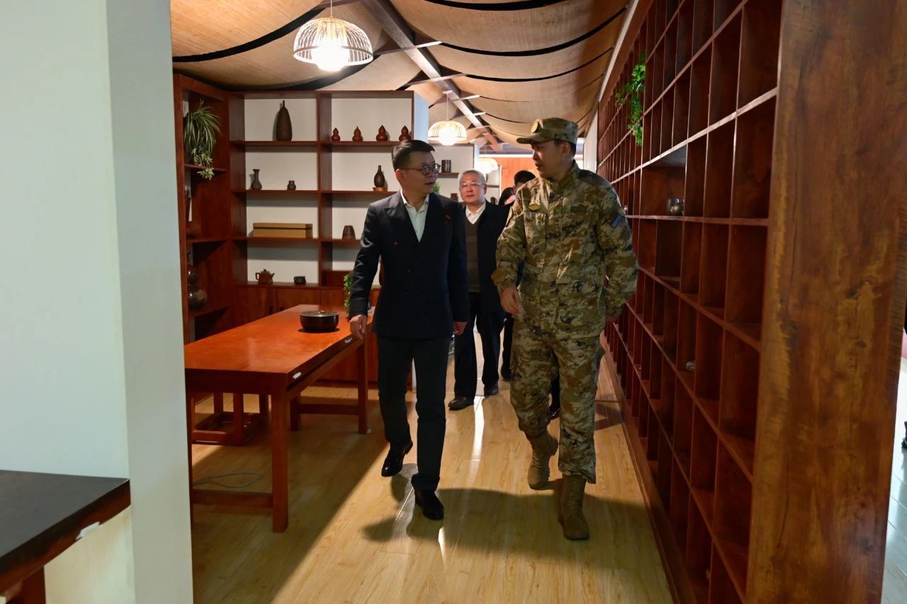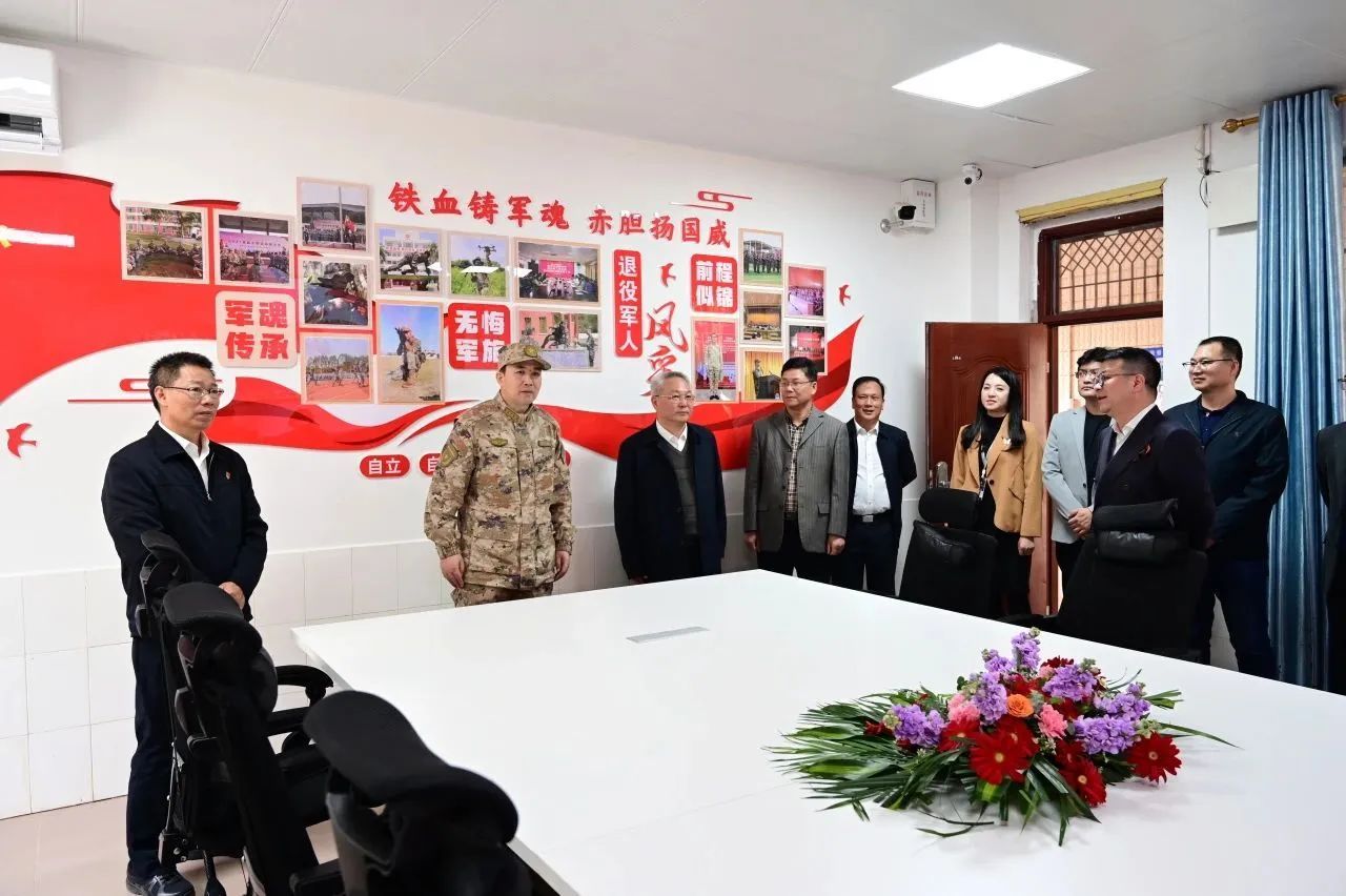仪式后,钦州市委常委、军分区大校司令员龙卷一行继续参观考察学校退役军人服务中心,了解中心建设情况及学校发展情况。
