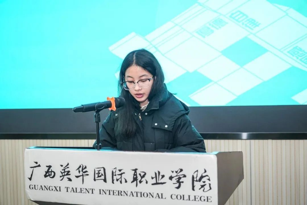 ▲广西英华国际职业学院教师代表麦琪发言