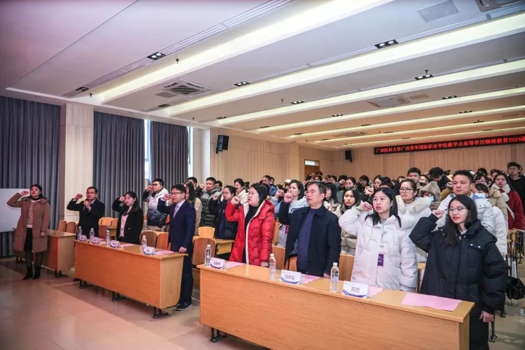 隆冬千帆济沧海,乘风破浪正当时。1月27日,广西英华国际职业学院隆重举办广西医科大学广西英华国际职业学院教学点高等学历继续教育2024级新生开学典礼,出席领导有广西医科大学继续教育学院院长周波、副院长韦先良、广西英华国际职业学院副校长赵春辉,广西医科大学继续教育学院教务科科长冯政毅、广西英华国际职业学院教师代表、继续教育学院全体教职工和2024级新生代表参加开学典礼。199名新同学在这里踏上求学求知的漫漫征途,开启求是求新的辽阔篇章。典礼由广西英华国际职业学院继续教育学院院长丁雪萍主持。