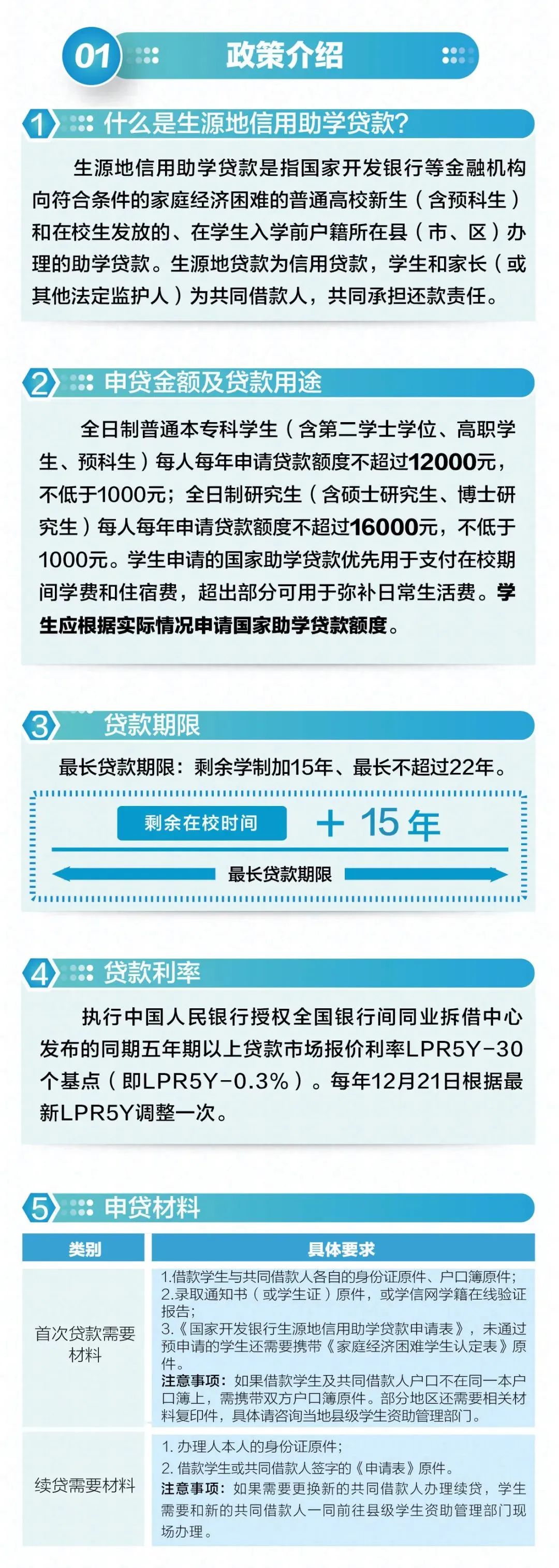 最长贷款期限:学制加15年、最长不超过22年。