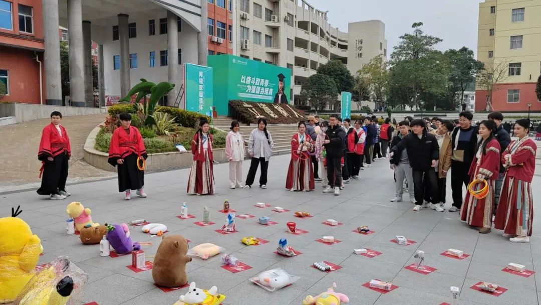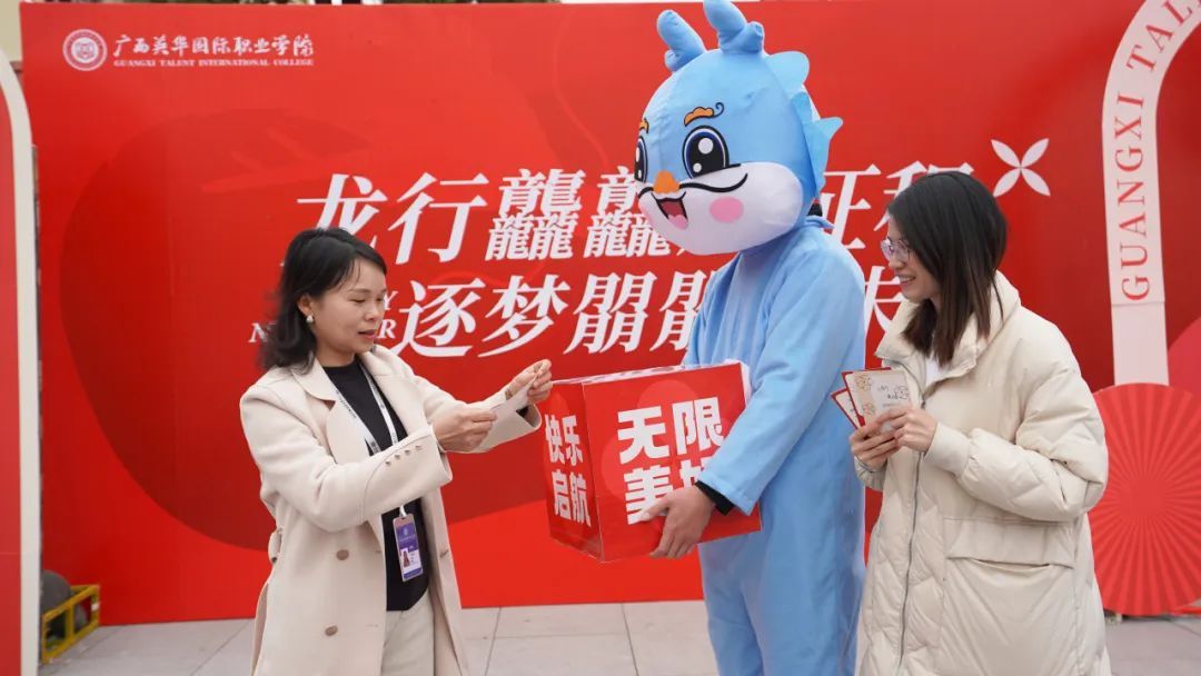 新春的校园,张灯结彩,人潮涌动,在“龙”年元素的点缀下,处处洋溢着喜气洋洋的景象。专业老师身着传统汉服,在各活动站点与学生亲切互动;青年志愿者们穿梭在校门与宿舍之间,帮忙提行李、引导上下车;宿管叔叔阿姨也摇身一变,在公寓楼门口欢迎“公主”“王子”们回家!