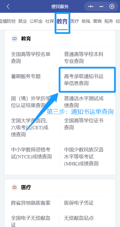找到【录取通知书运单信息查询】入口,