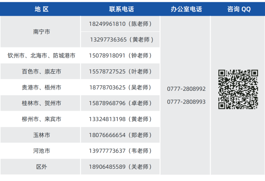 五、各片区志愿填报 指导咨询电话