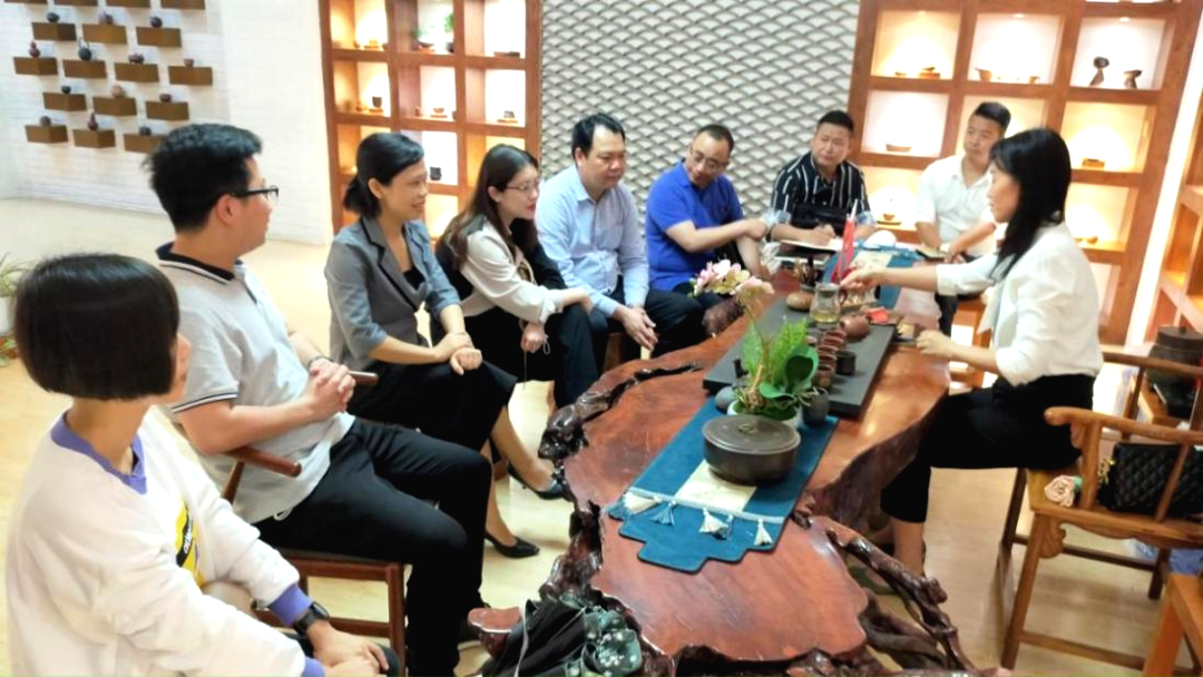 为了深化与企业的产教融合和拓宽艺术与设计学院服务地方行业企业发展的能力,2022年5月9日,艺术与设计学院邀请钦州市广告协会副会长梁彩霞、石钦文等领导班子到院洽谈交流,副院长黄滨、系主任程晴、骨干教师李仕定、张春丽参加了交流会。