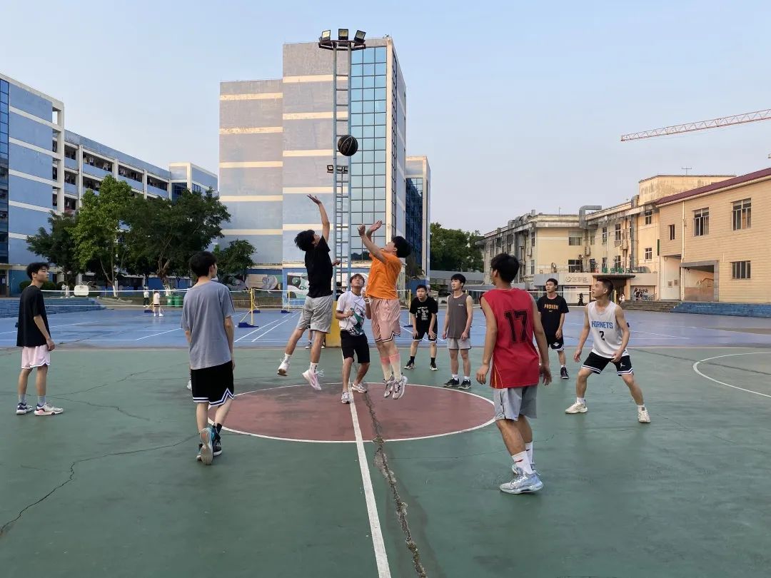 篮球赛分为小组赛和决赛两个阶段。同学们欢腾着奔赴球场,在滚烫的球场上,挥洒青春的汗水。现场热闹非凡、高潮迭起、掌声不断,每一次精彩的得分都引起观众们的阵阵欢呼。经过小组赛的比拼,“游击队”、“啊对对队”“柒V伍队”进入了决赛。总决赛于“五一”收假后火热开打,敬请期待!