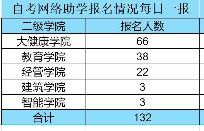 宣讲会结束后,继教院积极与各二级学院对接,各二级学院也成立了工作小组,组建辅导员微信工作群、学生QQ咨询群等,目前学生QQ咨询群人数已经达到960人,咨询氛围活跃。每天继教院专员和辅导员都在群里耐心解答学生的各种问题,甚至直接与家长沟通,辅导员老师们积极主动,较好的推进了网络助学项目的开展。截止3月28日,短短1周时间,报名学生达到132人。每天继教院都会将最新报名情况汇总并给各二级学院汇报。各二级学院,你追我赶,报名人数持续上涨。